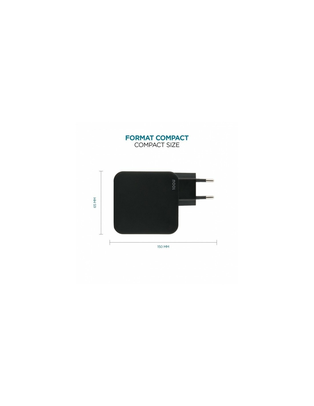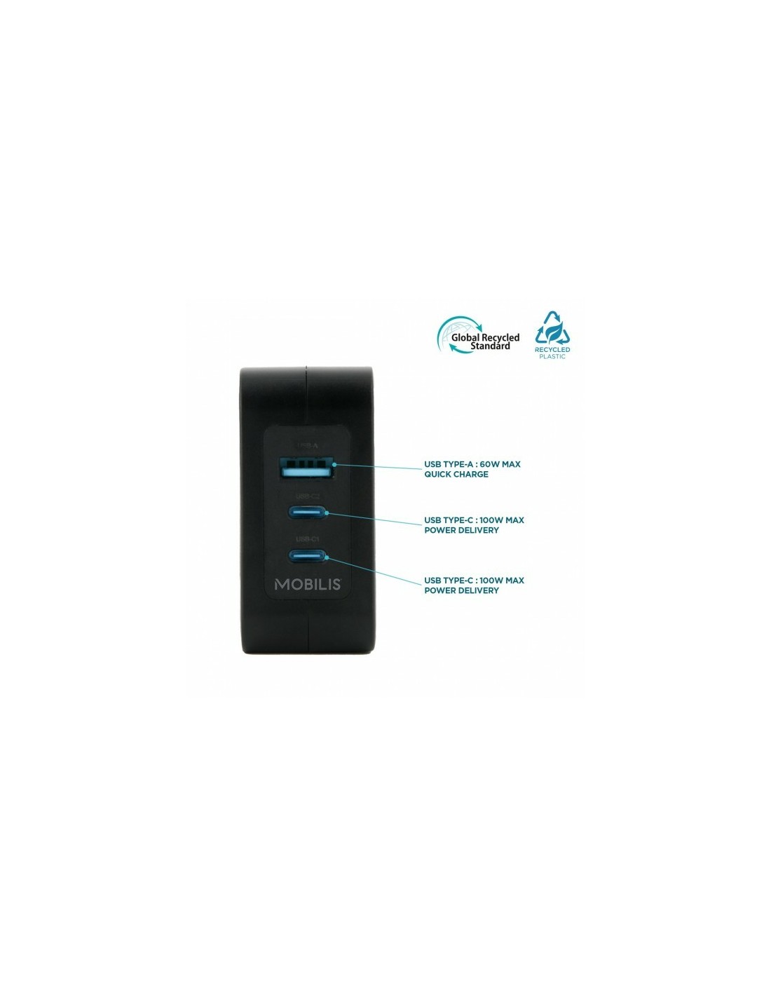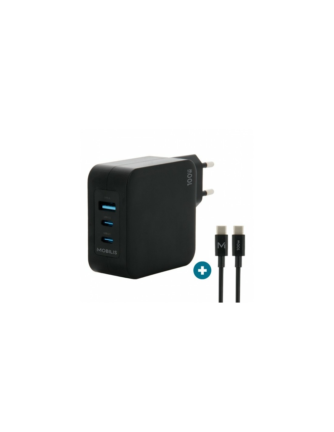 Mobilis Charger 100W 2USB C 1USBA GaN cable 100W, Interior, Corriente alterna, Negro