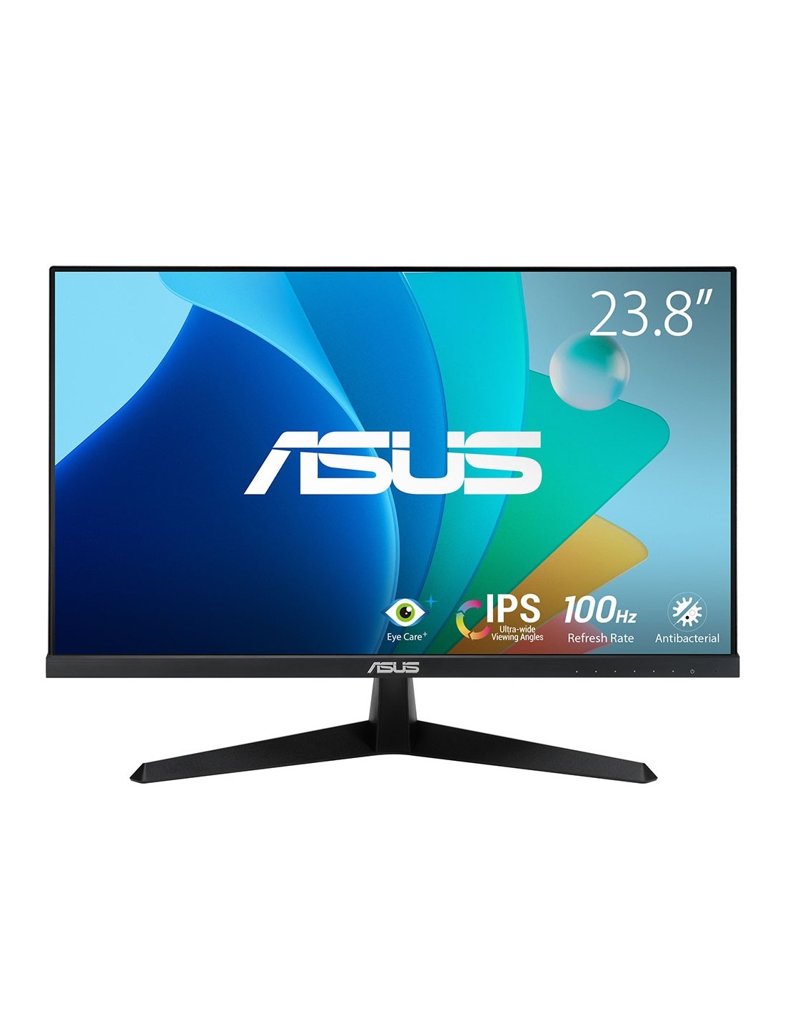 ASUS VY249HF. Diagonal de la pantalla: 60,5 cm (23.8"), Resolución de la pantalla: 1920 x 1080 Pixeles, Tipo HD: Full HD, Tecnología de visualización: LCD, Tiempo de respuesta: 1 ms, Relación de aspecto nativa: 16:9, Ángulo de visión, horizontal: 178°, Ángulo de visión, vertical: 178°. montaje VESA. Color del producto: Negro