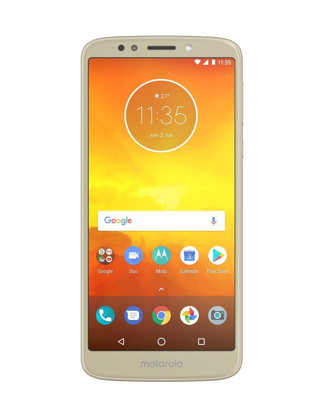 Motorola moto e⁵. Diagonal de la pantalla: 14,5 cm (5.7"), Resolución de la pantalla: 1440 x 720 Pixeles. Frecuencia del procesador: 1,4 GHz, Familia de procesador: Qualcomm Snapdragon, Modelo del procesador: 425. Capacidad de RAM: 2 GB, Capacidad de almacenamiento interno: 16 GB. Resolución de la cámara trasera (numérica): 13 MP, Tipo de cámara trasera: Cámara única. Capacidad de la tarjeta SIM: SIM doble. Sistema operativo instalado: Android 8.0. Capacidad de batería: 4000 mAh. Color del producto: Oro. Peso: 174 g