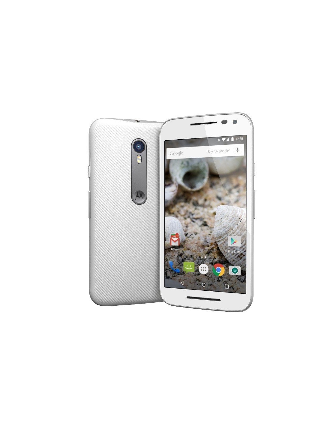 Lenovo Moto G. Diagonal de la pantalla: 12,7 cm (5"), Resolución de la pantalla: 1280 x 720 Pixeles. Frecuencia del procesador: 1,4 GHz, Familia de procesador: Qualcomm Snapdragon, Modelo del procesador: 410. Capacidad de RAM: 1 GB, Capacidad de almacenamiento interno: 8 GB. Resolución de la cámara trasera (numérica): 13 MP, Tipo de cámara trasera: Cámara única. Capacidad de la tarjeta SIM: SIM única. Sistema operativo instalado: Android 5.1.1. Capacidad de batería: 2470 mAh. Color del producto: Blanco. Peso: 155 g