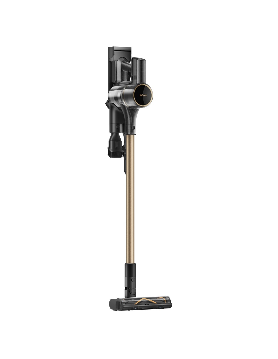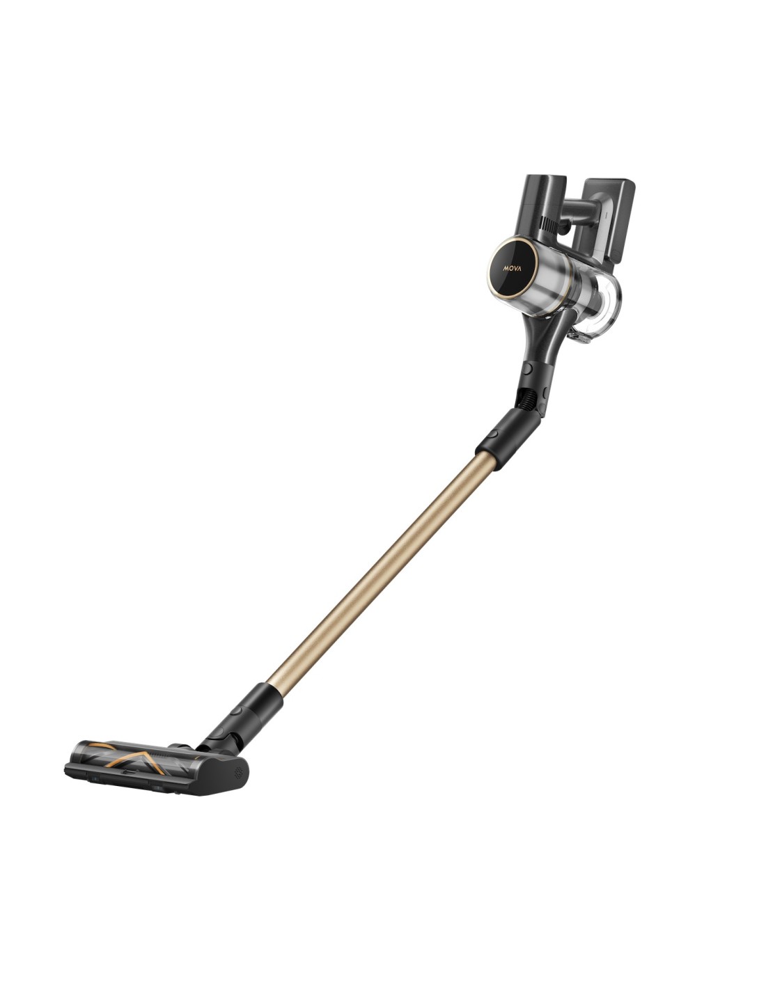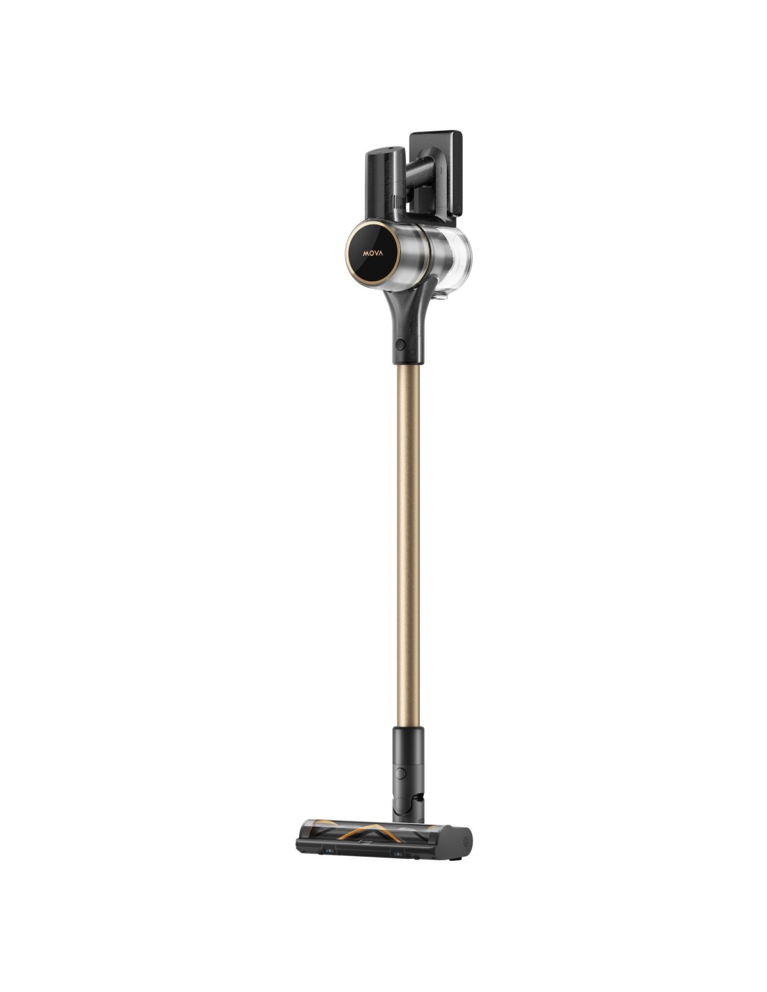 MOVA Tech S5. Tipo de producto: Aspiradora escoba 2 en 1, Tipo de depósito: Sin bolsa, Color del producto: Negro, Oro. Tipo de limpiador: Secar, Método de separación de la suciedad: Ciclónico, Superficies de limpieza: Alfombra, Suelo duro. Fuente de energía: Batería, Potencia máx. de entrada: 570 W, Potencia de succión: 27000 Pa. Cantidad por paquete: 1 pieza(s). Peso: 1,76 kg