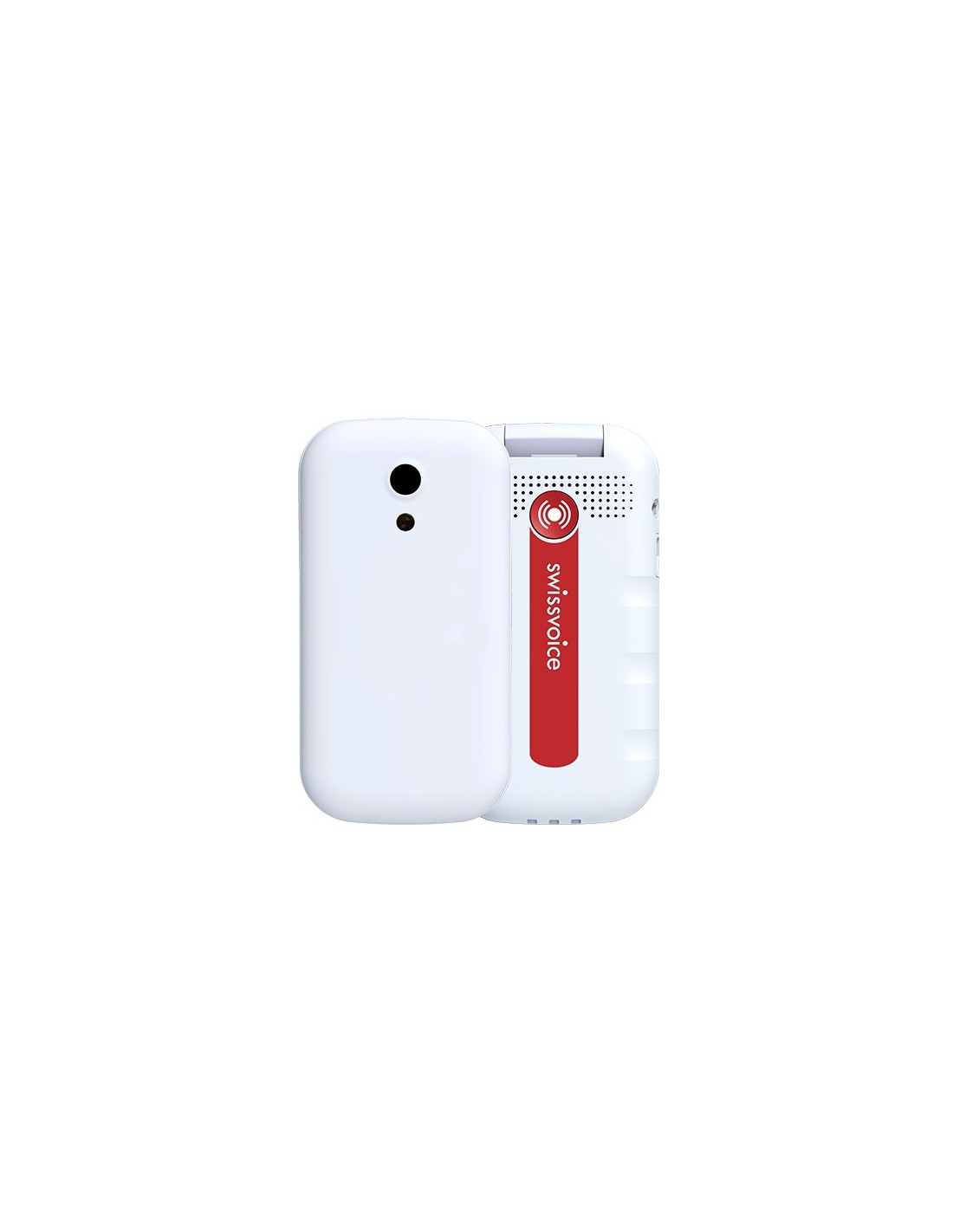 SwissVoice S24. Factor de forma: Móvil con tapa. Capacidad de la tarjeta SIM: SIM única. Diagonal de la pantalla: 6,1 cm (2.4"), Resolución de la pantalla: 240 x 320 Pixeles. Resolución de la cámara trasera (numérica): 0,3 MP. Bluetooth. Tecnología de batería: Ión de litio, Capacidad de batería: 800 mAh, Tiempo de suspendido (2G): 168 h. Color del producto: Blanco