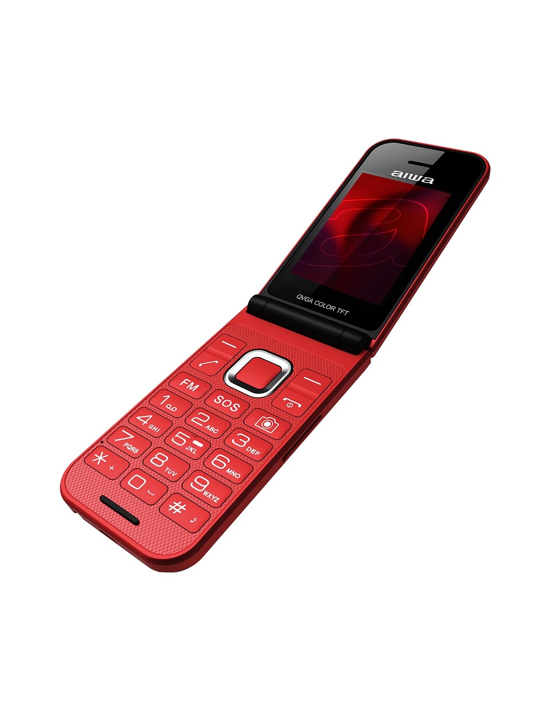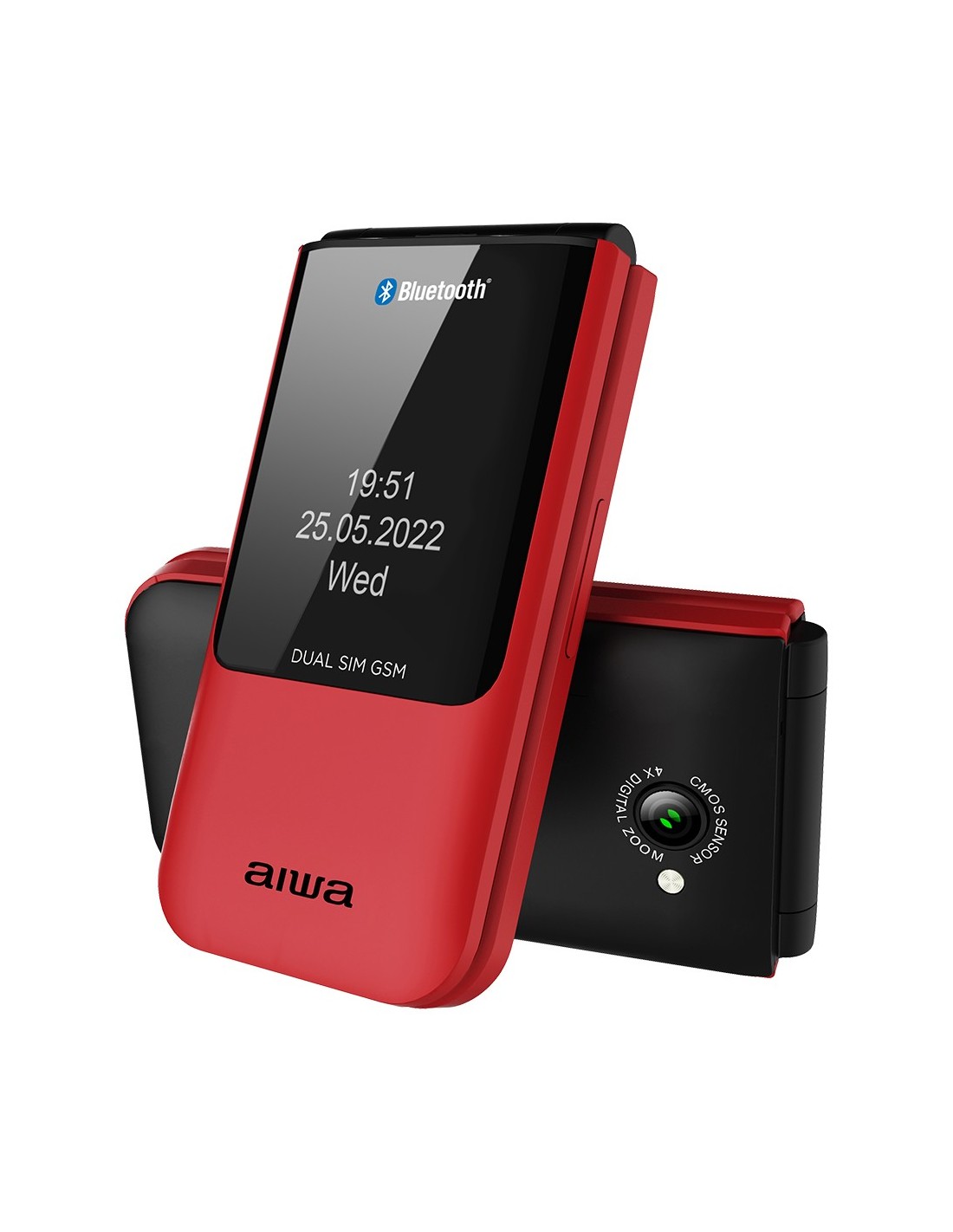 Aiwa FP-24RD. Factor de forma: Concha. Capacidad de la tarjeta SIM: SIM doble. Diagonal de la pantalla: 6,1 cm (2.4"), Pantalla externa: LCD. Resolución de la cámara trasera (numérica): 0,3 MP. Bluetooth. Radio FM. Tecnología de batería: Litio, Capacidad de batería: 800 mAh. Peso: 91,7 g. Color del producto: Negro, Rojo