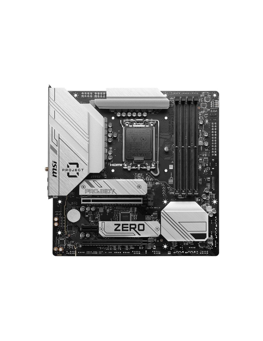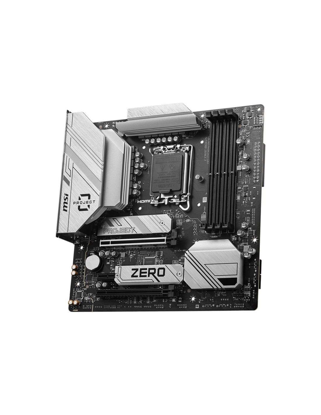 MSI B760M Ptoject Zero. Fabricante de procesador: Intel, Socket de procesador: LGA 1700, Procesador compatible: Intel® Celeron®, Intel® Pentium® Gold. tipos de memoria compatibles: DDR5-SDRAM, Memoria interna máxima: 256 GB, Compatibilidad de ECC: No-ECC. Interfaces de disco de almacenamiento soportados: SATA III, Tipos de unidades de almacenamiento admitidas: HDD & SSD, Niveles RAID: 0, 1, 5, 10. Tipo de interfaz ethernet: Gigabit Ethernet, Controlador LAN: Realtek RTL8111H. Componente para: PC, Factor de forma: micro ATX, Familia del chipset: Intel