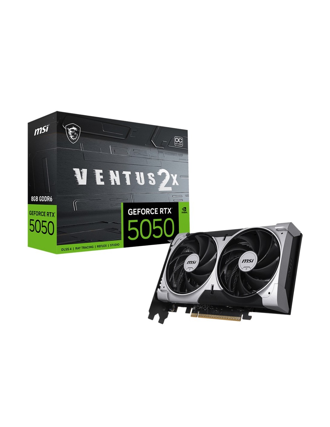 MSI GEFORCE RTX 5050 8G VENTUS 2X OC. Familia de procesadores de gráficos: NVIDIA, Procesador gráfico: GeForce RTX 5050. Capacidad memoria de adaptador gráfico: 8 GB, Tipo de memoria de adaptador gráfico: GDDR6, Ancho de datos: 128 bit. Máxima resolución: 7680 x 4320 Pixeles. Versión DirectX: 12 Ultimate, Versión OpenGL: 4.6. Tipo de interfaz: PCI Express x16 5.0. Tipo de enfriamiento: Activo, Número de ventiladores: 2 Ventilador(es)