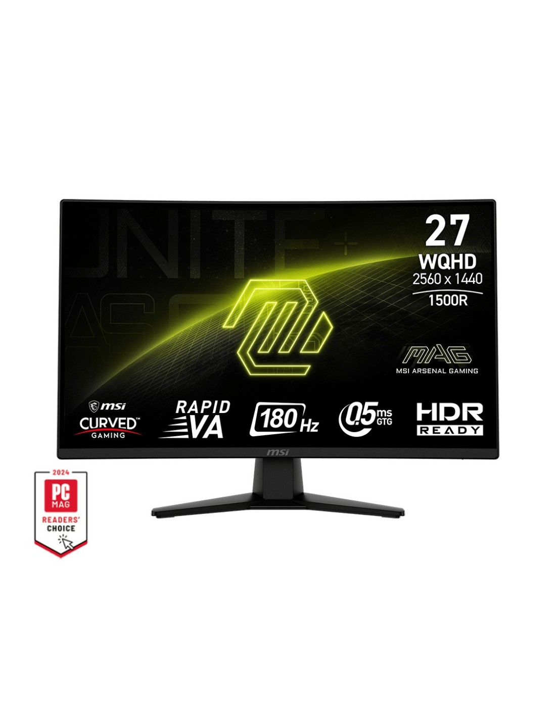 MSI MAG 274CQF. Diagonal de la pantalla: 68,6 cm (27"), Resolución de la pantalla: 2560 x 1440 Pixeles, Tipo HD: Wide Quad HD, Tiempo de respuesta: 0,5 ms, Relación de aspecto nativa: 16:9, Ángulo de visión, horizontal: 178°, Ángulo de visión, vertical: 178°. montaje VESA. Color del producto: Negro