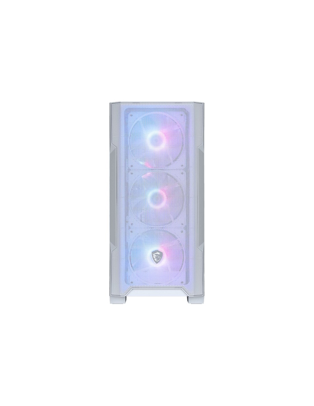 MSI MAG Forge M100R. Factor de forma: Midi Tower, Tipo: PC, Color del producto: Transparente, Blanco. Ubicación de fuente de alimentación: Fondo. Ventiladores frontales instalados: 3x 120 mm, Diámetro de ventiladores frontales soportados: 120 mm, Ventiladores traseros instalados: 1x 120 mm. Tamaños de disco duro soportados: 2.5,3.5". Ancho: 388 mm, Profundidad: 200 mm, Altura: 423 mm