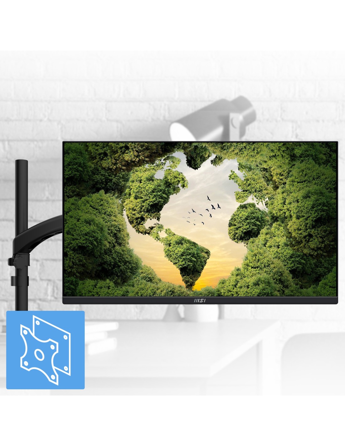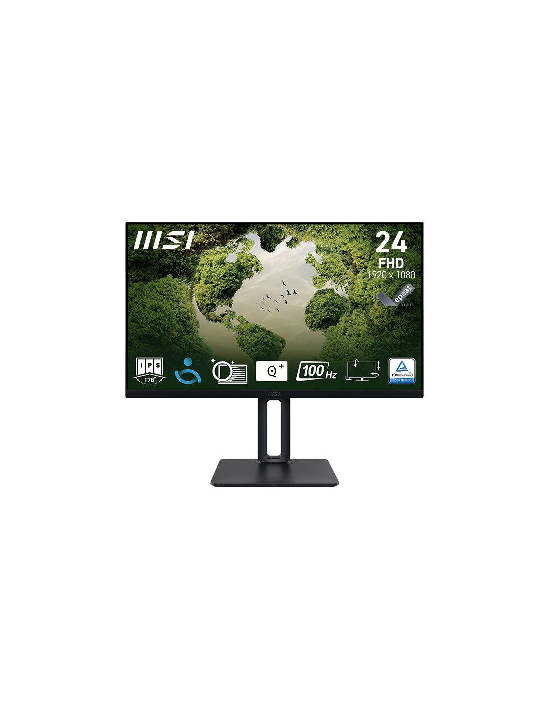 MSI Pro MP245PG. Diagonal de la pantalla: 60,5 cm (23.8"), Resolución de la pantalla: 1920 x 1080 Pixeles, Tipo HD: Full HD, Tecnología de visualización: LCD, Tiempo de respuesta: 4 ms, Relación de aspecto nativa: 16:9, Ángulo de visión, horizontal: 178°, Ángulo de visión, vertical: 178°. Altavoces incorporados. montaje VESA, Ajustes de altura. Color del producto: Negro