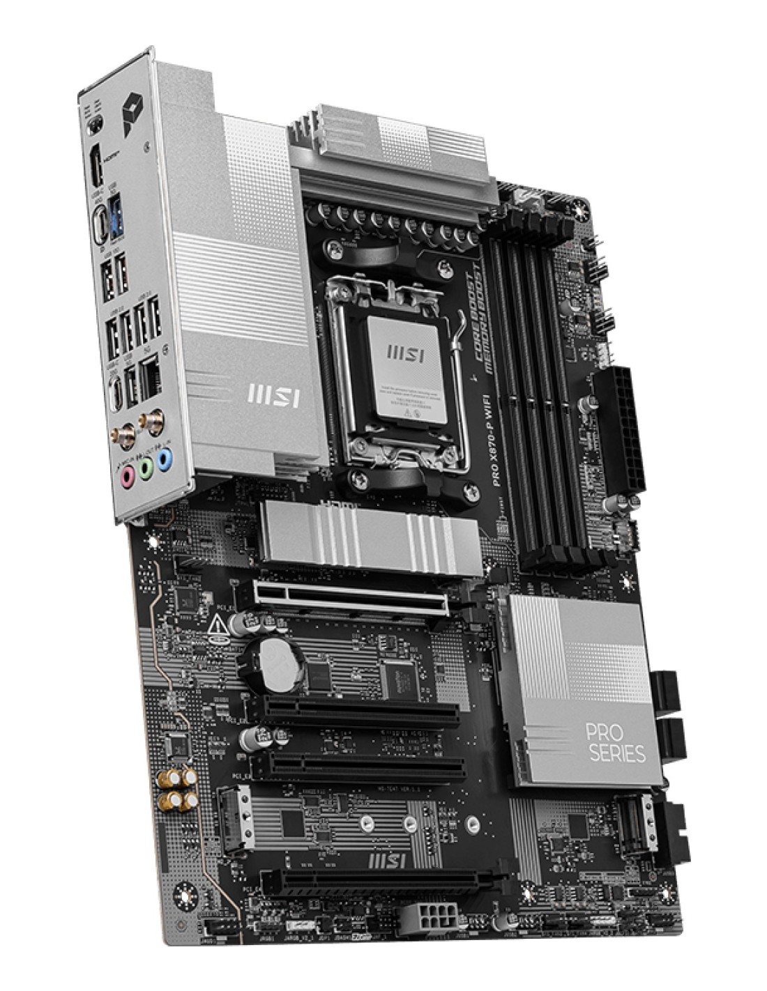 MSI PRO X870-P WIFI. Fabricante de procesador: AMD, Socket de procesador: Zócalo AM5, Procesador compatible: AMD Ryzen™ 7. tipos de memoria compatibles: DDR5-SDRAM, Memoria interna máxima: 256 GB, Tipo de ranuras de memoria: DIMM. Interfaces de disco de almacenamiento soportados: M.2, SATA III, Tipos de unidades de almacenamiento admitidas: HDD & SSD, Niveles RAID: 0, 1. Tipo de interfaz ethernet: 5 Gigabit Ethernet, Estándar Wi-Fi: Wi-Fi 7 (802.11be), Wi-Fi estándares: Wi-Fi 7 (802.11be). Componente para: PC, Factor de forma: ATX, Familia del chipset: AMD