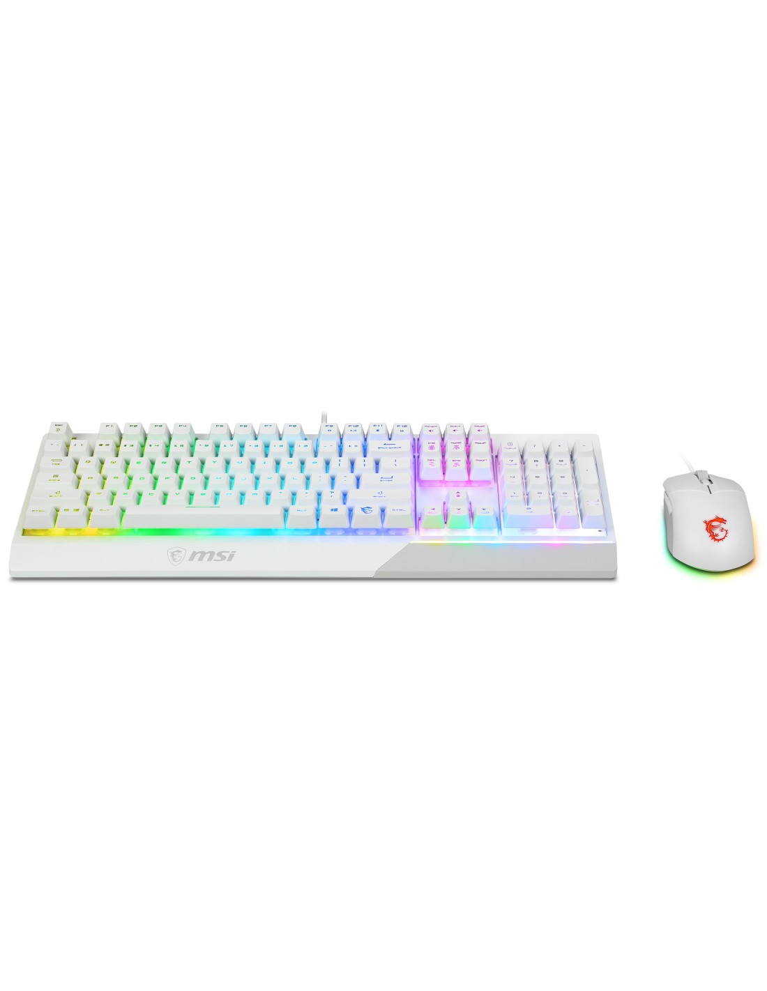 MSI S11-04ES305-CLA. Formato del teclado: Completo (100%). Estilo de teclado: Derecho. Tecnología de conectividad: Alámbrico, Interfaz del dispositivo: USB, Interruptor del teclado: Interruptor mecánico, Diseño de teclado: QWERTY. Tipo de retroiluminación: LED RGB. Longitud de cable: 1,8 m. Uso recomendado: Juego. Color del producto: Blanco. Ratón incluido