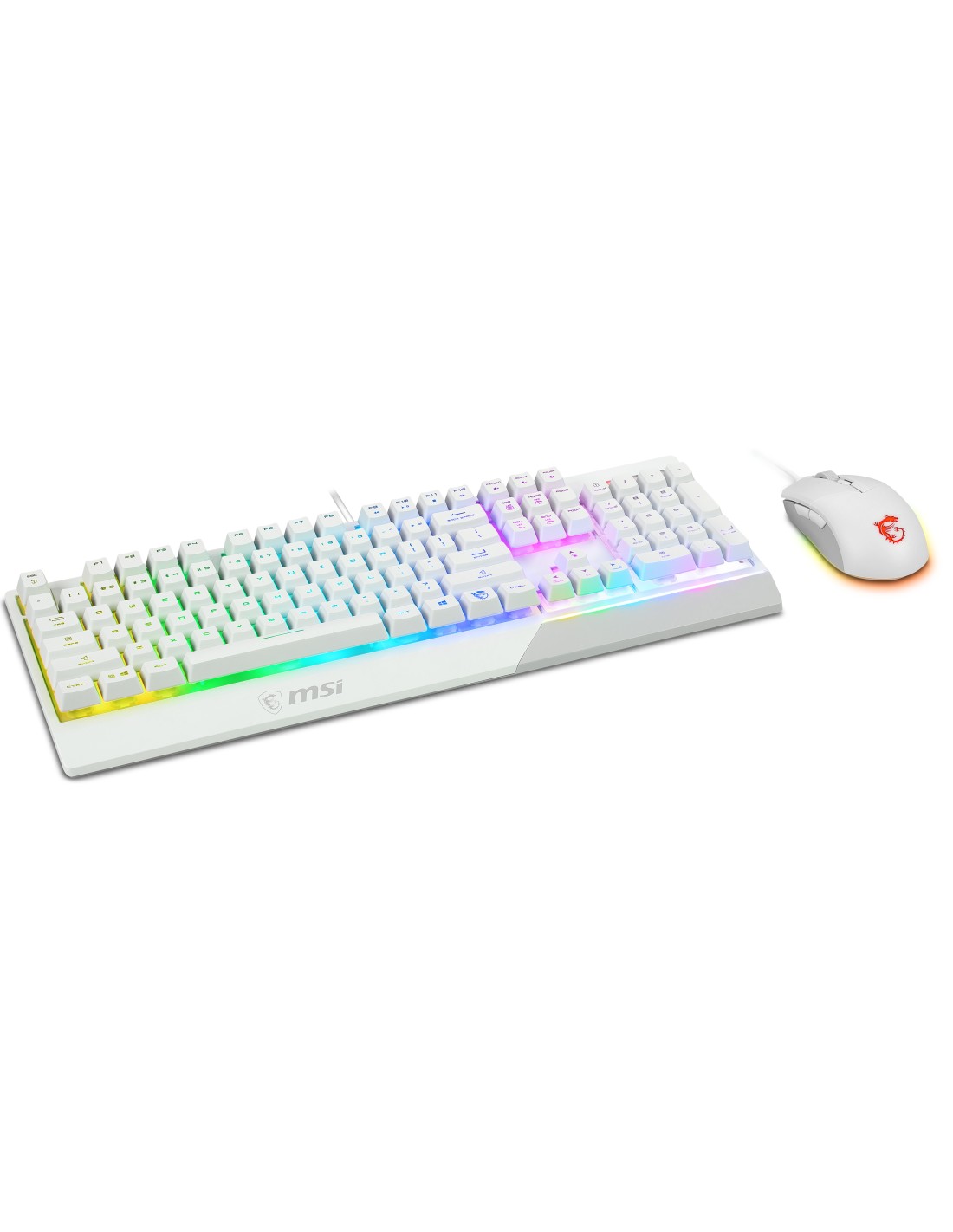 MSI S11-04ES305-CLA. Formato del teclado: Completo (100%). Estilo de teclado: Derecho. Tecnología de conectividad: Alámbrico, Interfaz del dispositivo: USB, Interruptor del teclado: Interruptor mecánico, Diseño de teclado: QWERTY. Tipo de retroiluminación: LED RGB. Longitud de cable: 1,8 m. Uso recomendado: Juego. Color del producto: Blanco. Ratón incluido