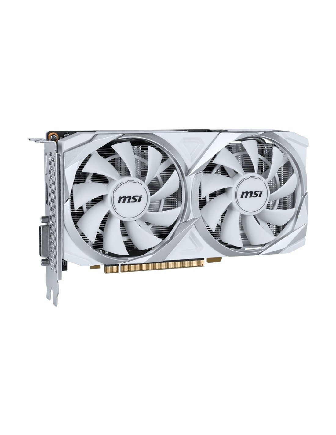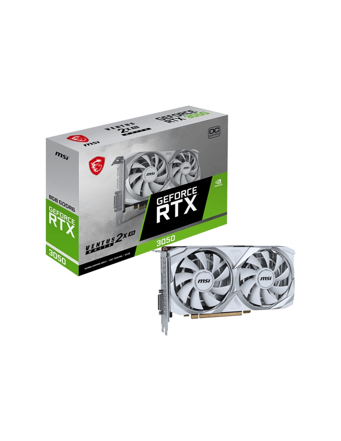 MSI VENTUS RTX 3050 2X XS WHITE 8G OC. Familia de procesadores de gráficos: NVIDIA, Procesador gráfico: GeForce RTX 3050, Frecuencia del procesador: 1807 MHz. Capacidad memoria de adaptador gráfico: 8 GB, Tipo de memoria de adaptador gráfico: GDDR6, Ancho de datos: 128 bit. Máxima resolución: 7680 x 4320 Pixeles. Versión DirectX: 12 Ultimate, Dual Link DVI. Tipo de interfaz: PCI Express x8 4.0. Tipo de enfriamiento: Activo, Número de ventiladores: 2 Ventilador(es)