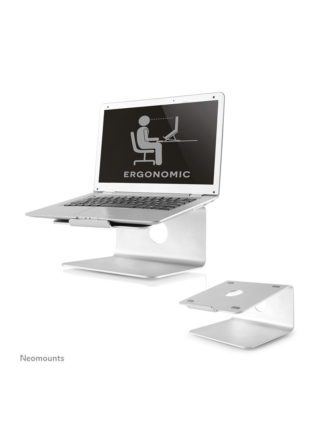 Usando un soporte ergonomico como el Neomounts NSLS050 se crea facilmente una posicion de trabajo mas comoda y se evitan molestias de cuello y espalda. El diseño hueco asegura un buen flujo de aire, evitando cualquier problema de sobrecalentamiento. La base giratoria de 360 grados permite girar el portátil en la dirección deseada en cuestión de segundos.