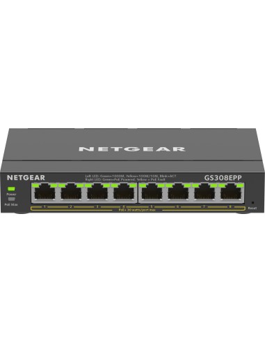 NETGEAR 8-Port Gigabit Ethernet High-Power PoE+ Plus Switch (GS308EPP), Gestionado, L2/L3, Gigabit Ethernet (10/100/1000), Bidireccional completo (Full duplex), Energía sobre Ethernet (PoE)