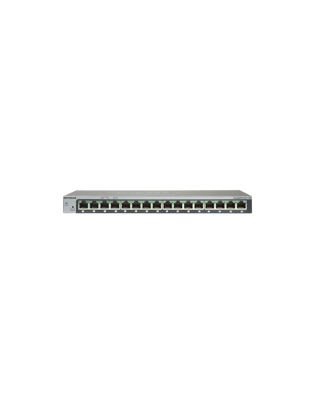 NETGEAR GS116. Tipo de interruptor: No administrado. Puertos tipo básico de conmutación RJ-45 Ethernet: Gigabit Ethernet (10/100/1000), Cantidad de puertos básicos de conmutación RJ-45 Ethernet: 16. Bidireccional completo (Full duplex). Tabla de direcciones MAC: 8000 entradas, Capacidad de conmutación: 32 Gbit/s. Estándares de red: IEEE 802.1p. Voltaje de entrada DC: 12 V