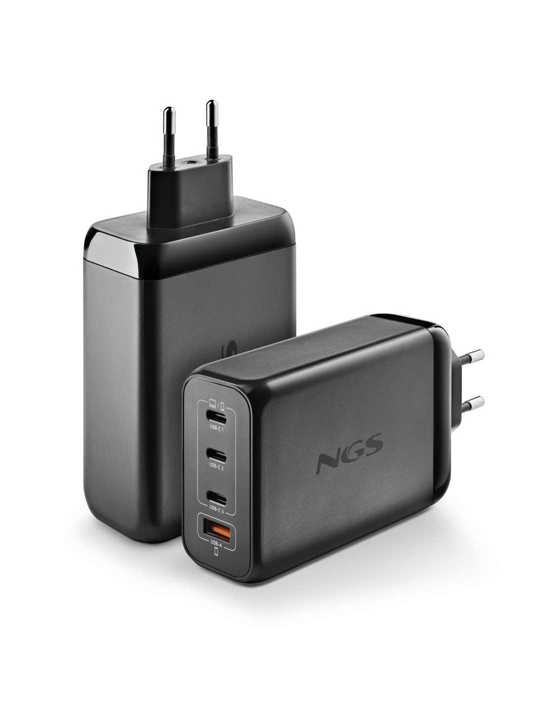 NGS BUD 240W. Tipo de cargador: Interior, Alimentación: Corriente alterna, Compatibilidad del cargador: Universal. Voltaje de entrada: 100 - 240 V, Voltaje de salida máximo: 28 V, Corriente de salida de adaptador AC: 5 A. Número de puertos USB Tipo C: 3, Carga rápida. Color del producto: Negro