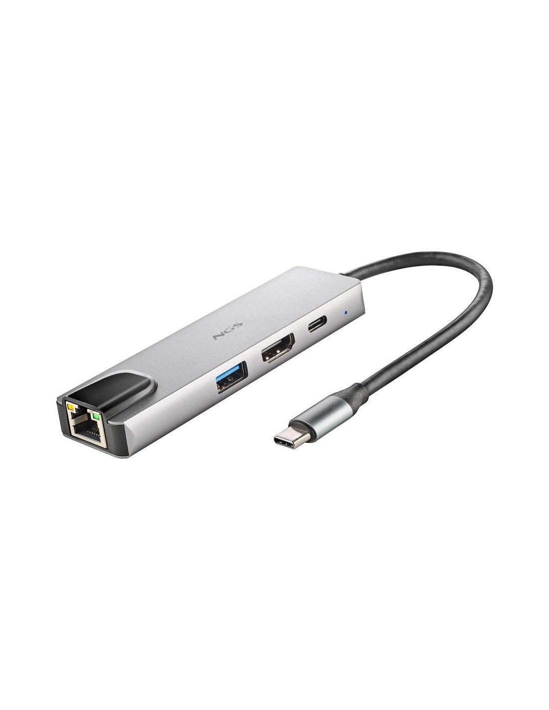 NGS -HUB-0140, USB 2.0 Type-C, HDMI, RJ-45, USB 3.2 Gen 1 (3.1 Gen 1) Type-A, USB Tipo C, 5000 Mbit/s, 3840 x 2160 Pixeles, Aluminio, Negro, Aluminio