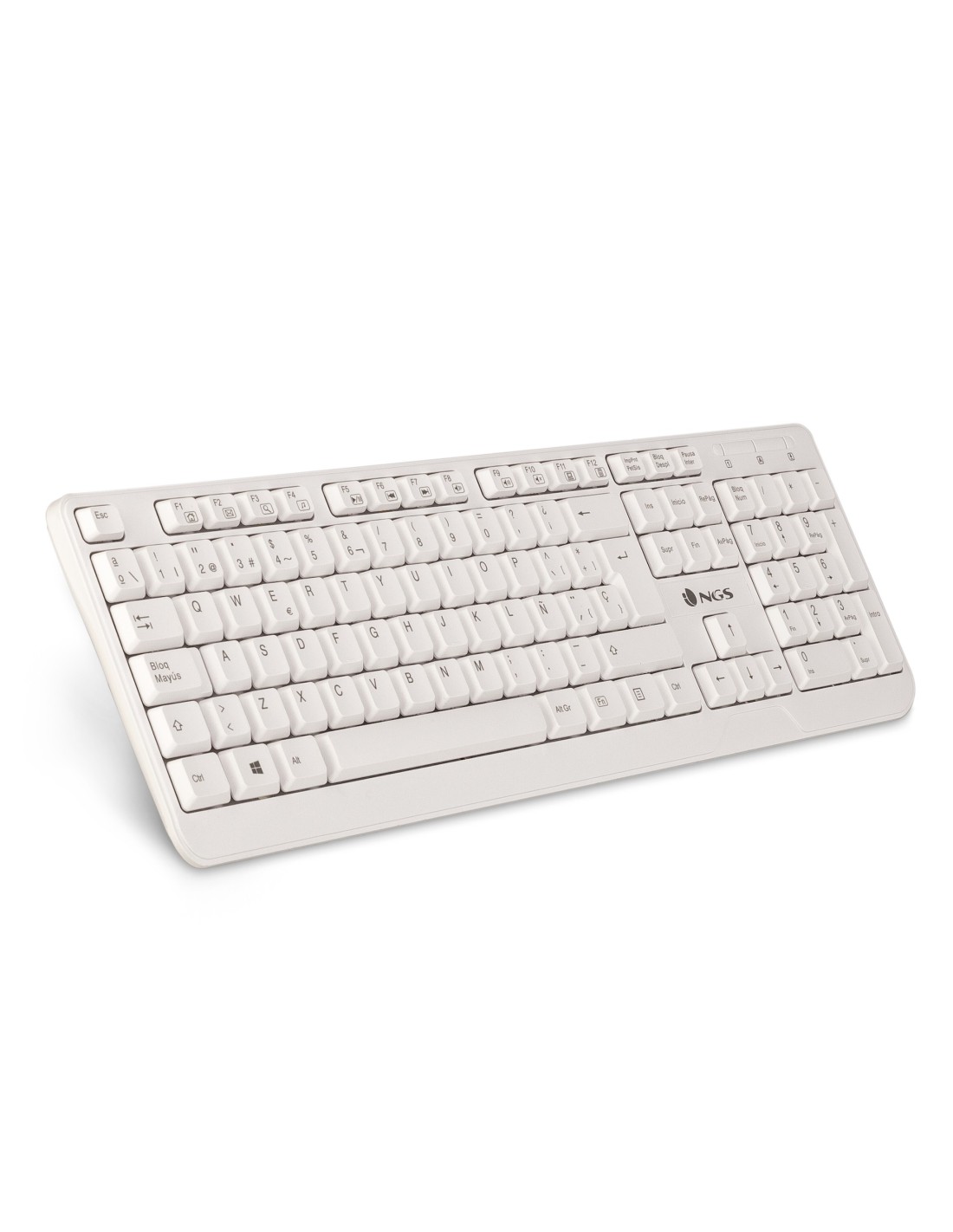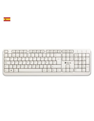 NGS Spike (Español), QWERTY. Formato del teclado: Completo (100%). Estilo de teclado: Derecho. Tecnología de conectividad: Alámbrico, Interfaz del dispositivo: USB, Interruptor del teclado: Interruptor de membrana, Diseño de teclado: QWERTY, Teclado, cantidad de teclas: 105. Longitud de cable: 1,4 m. Uso recomendado: Universal. Color del producto: Blanco