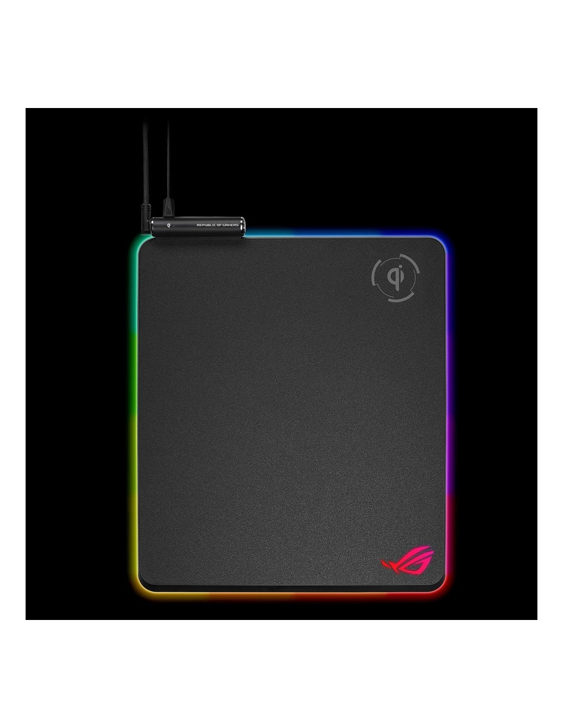 ASUS ROG Balteus Qi, Negro, Monocromo, Rojo/Verde/Azul, Base antiderrapante, Alfombrilla de ratón para juegos