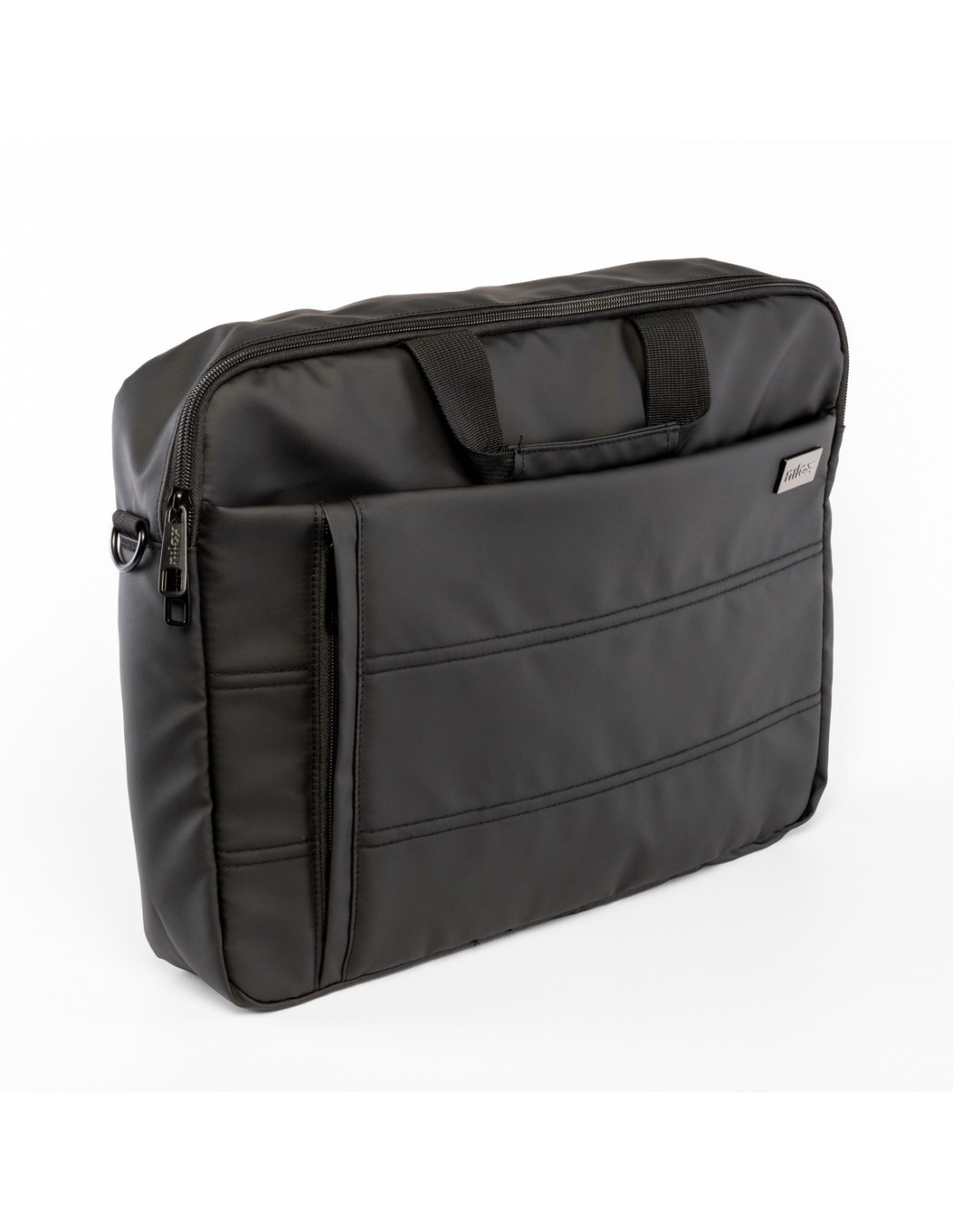 - Maletín para portátiles de hasta 15.6 " de color negro. Sus tres amplios compartimentos te permitirán llevar contigo tu laptop y todos los accesorios que necesites para tu trabajo de manera ordenada. - En Nilox cuidamos los detalles, por eso hemos diseñado esta línea de maletines con un diseño actual, fino y elegante, en distintos colores para que puedas elegir el tuyo. El interior del maletín va forrado con trama de logos, mientras que el exterior es 100% polyester con el logo en metal. - Su cremallera reforzada y su diseño sólido te permiten proteger los elementos esenciales de tu portátil - Incluye correa para que lo puedas trasportar en modo bandolera - Material Poliester . - Bolsillos para guardar accesorios. - Cinta para Trolley - Interior gris con trama de Logos. - Cremallera metal en negro.