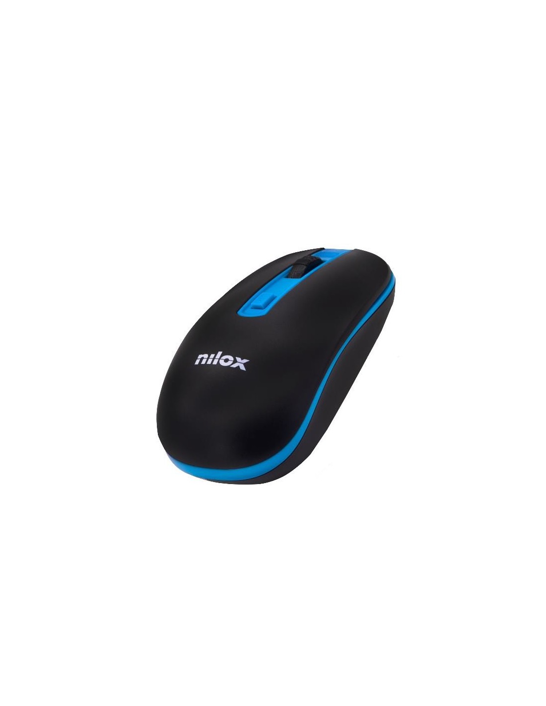 Nilox RATON WIRELESS 1600 DPI NEGRO/AZUL. Tecnología de detección de movimientos: Óptico, Interfaz del dispositivo: Wi-Fi, Resolución de movimiento: 1600 DPI, Tipo de botones: Botones presionados, Cantidad de botones: 4. Fuente de energía: Baterías. Color del producto: Negro, Azul