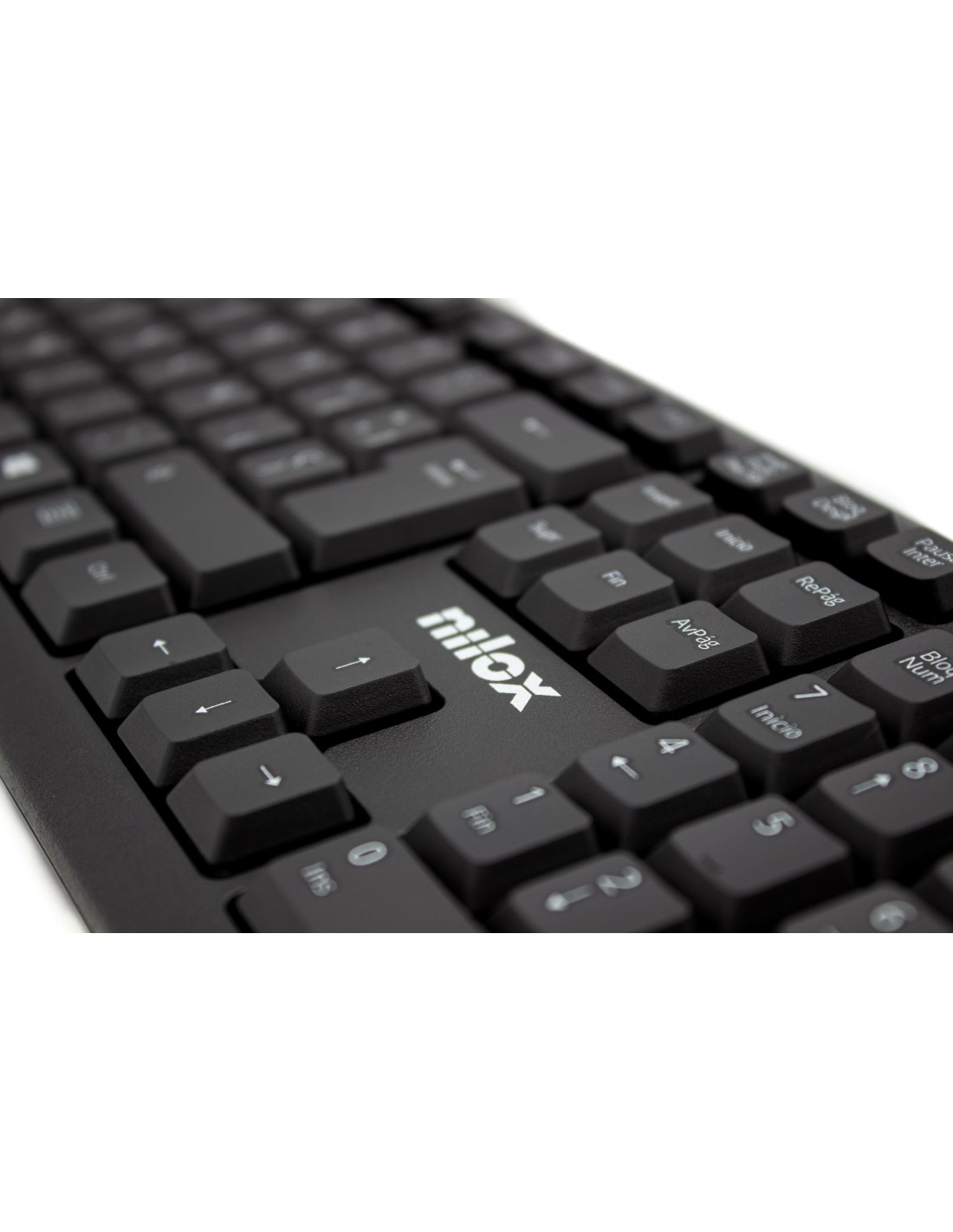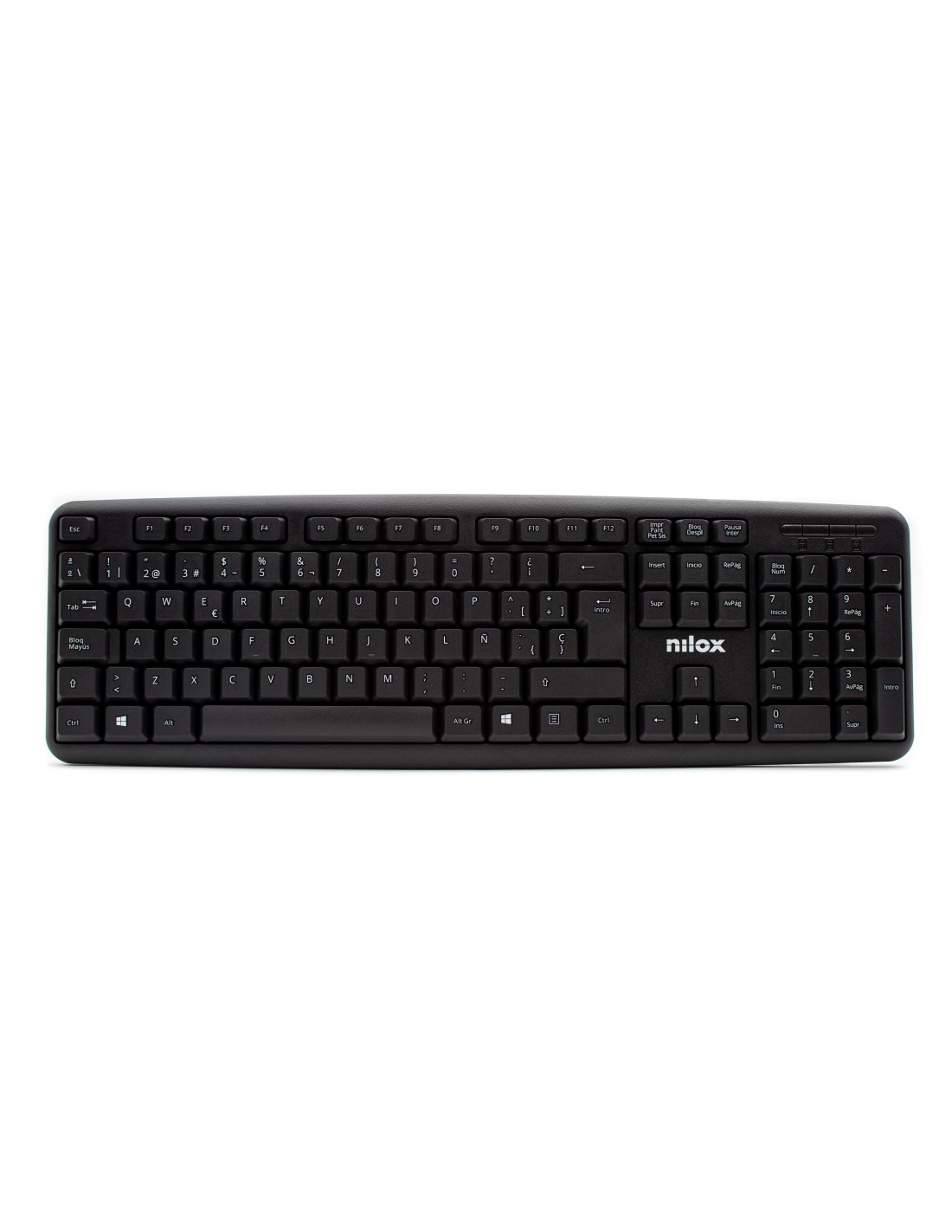 - Teclado Nilox USB compacto negro y resistente. - Tecnología de membrana para un funcionamiento silencioso. - 105 teclas con distribución española. - Dimensiones: 440 x 150 x 22mm. - Durabilidad: Más de 10 millones de pulsaciones. - Longitud del cable: 1.5m. - Cables de conexión USB para PC y portátiles. - Compatible con Windows.