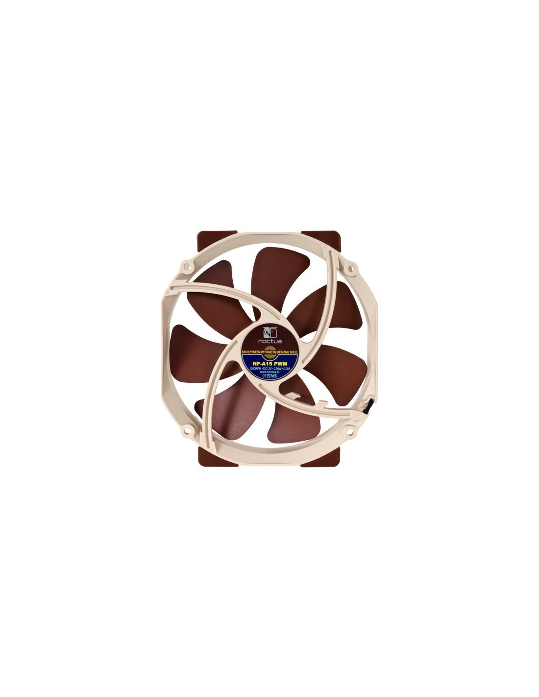 Noctua NF-A15 PWM. Tipo: Ventilador, Diámetro de ventilador: 14 cm, Velocidad de rotación (máx.): 1200 RPM, flujo de aire: 115,5 m³/h, Presión máxima de aire: 1,51 mmH2O. Voltaje: 12 V. Ancho: 140 mm, Profundidad: 150 mm, Altura: 25 mm