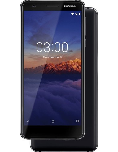 Nokia 3/1. Diagonal de la pantalla: 13,2 cm (5.2"), Resolución de la pantalla: 720 x 1440 Pixeles. Frecuencia del procesador: 1,5 GHz, Familia de procesador: MediaTek, Modelo del procesador: MT6750. Capacidad de RAM: 2 GB, Capacidad de almacenamiento interno: 16 GB. Resolución de la cámara trasera (numérica): 13 MP, Tipo de cámara trasera: Cámara única. Capacidad de la tarjeta SIM: SIM doble. Sistema operativo instalado: Android 8.0. Capacidad de batería: 2990 mAh. Color del producto: Negro. Peso: 138,3 g