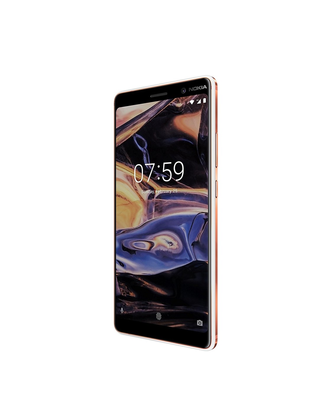 Nokia 7 Plus. Diagonal de la pantalla: 15,2 cm (6"), Resolución de la pantalla: 2160 x 1080 Pixeles. Frecuencia del procesador: 2,2 GHz, Familia de procesador: Qualcomm Snapdragon, Modelo del procesador: 660. Capacidad de RAM: 4 GB, Tipo de RAM: LPDDR4, Capacidad de almacenamiento interno: 64 GB. Resolución de la cámara trasera (numérica): 12 MP, Tipo de cámara trasera: Cámara doble. Capacidad de la tarjeta SIM: SIM doble. Sistema operativo instalado: Android 8.0. Capacidad de batería: 3800 mAh. Color del producto: Cobre, Blanco. Peso: 186 g