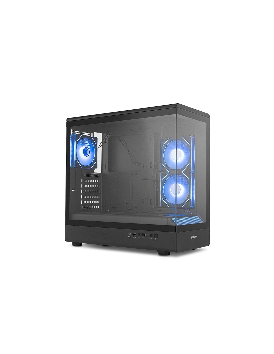 En su parte lateral inferior se encuentran los puertos dedicados a dos USB 3.0, un USB Tipo C de alta velocidad, así como las conexiones HD de audio y micrófono, lo que la hace una caja ideal para tener encima de tu escritorio o mesa gamer. Del mismo modo cuenta con una gestión de cableado de 21 mm.