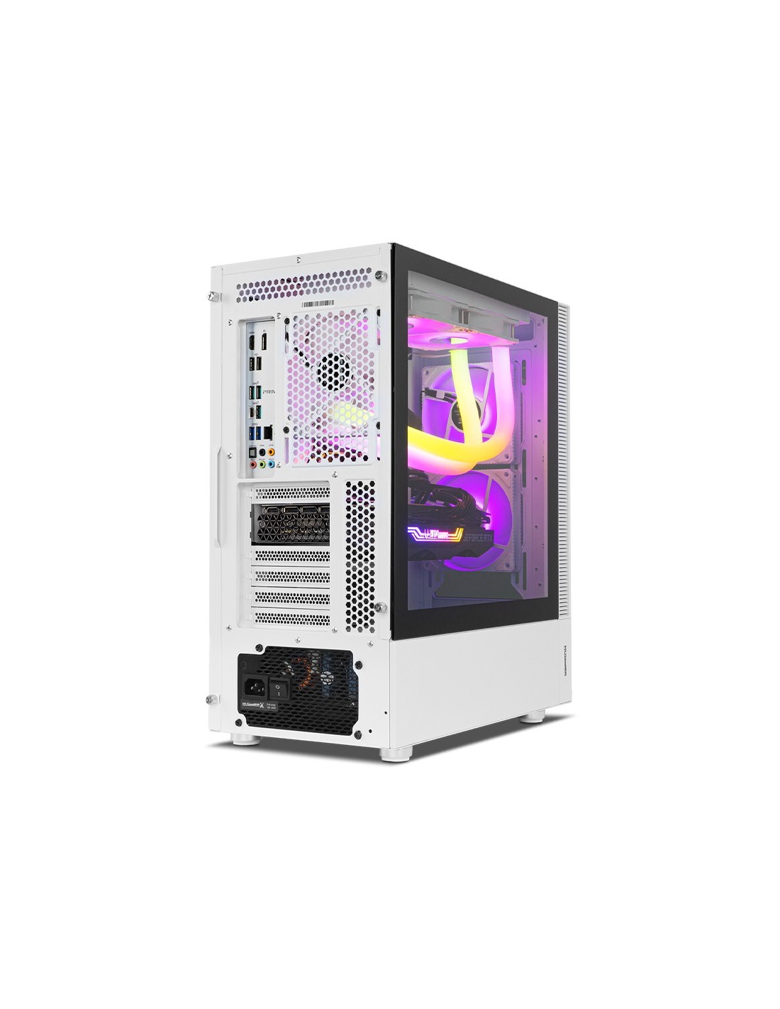 Disponible en dos colores, blanco o negro, con una estética increíble, la Nox Hummer Nemesis presenta un diseño gaming minimalista. Con doble cristal, uno en su frontal y otro en el lateral, el interior del equipo queda a la vista, disfrutando de la configuración avanzada y de la iluminación ARGB como nunca.