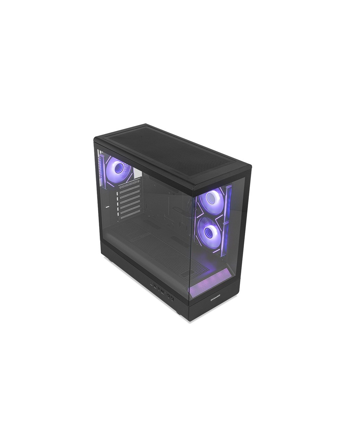 En su parte lateral inferior se encuentran los puertos dedicados a dos USB 3.0, un USB Tipo C de alta velocidad, así como las conexiones HD de audio y micrófono, lo que la hace una caja ideal para tener encima de tu escritorio o mesa gamer. Del mismo modo cuenta con una gestión de cableado de 21 mm.