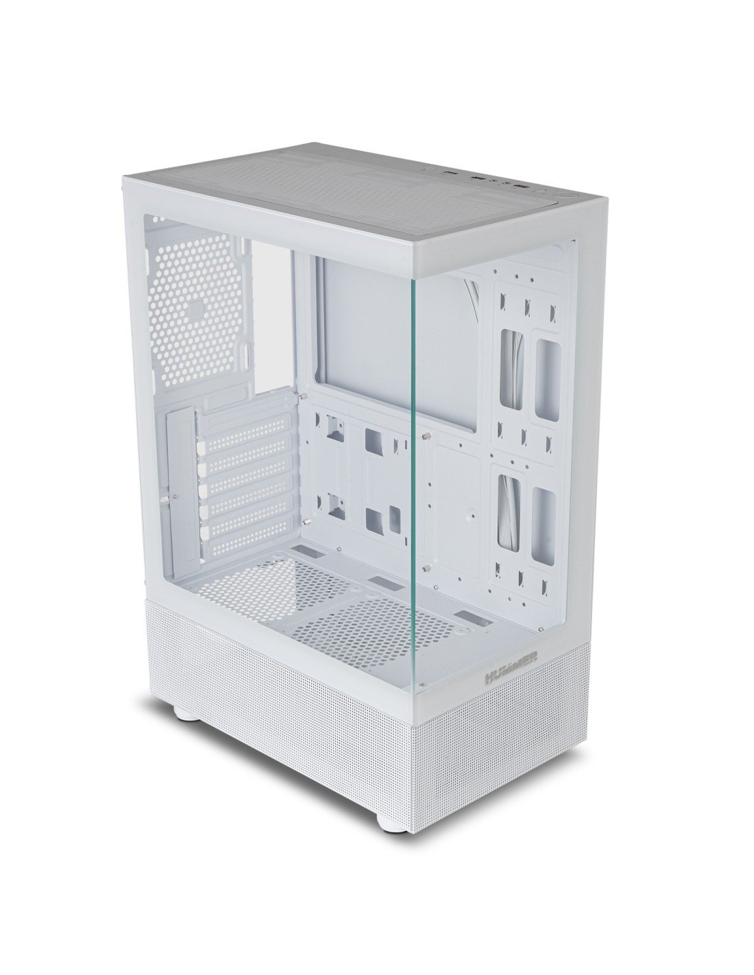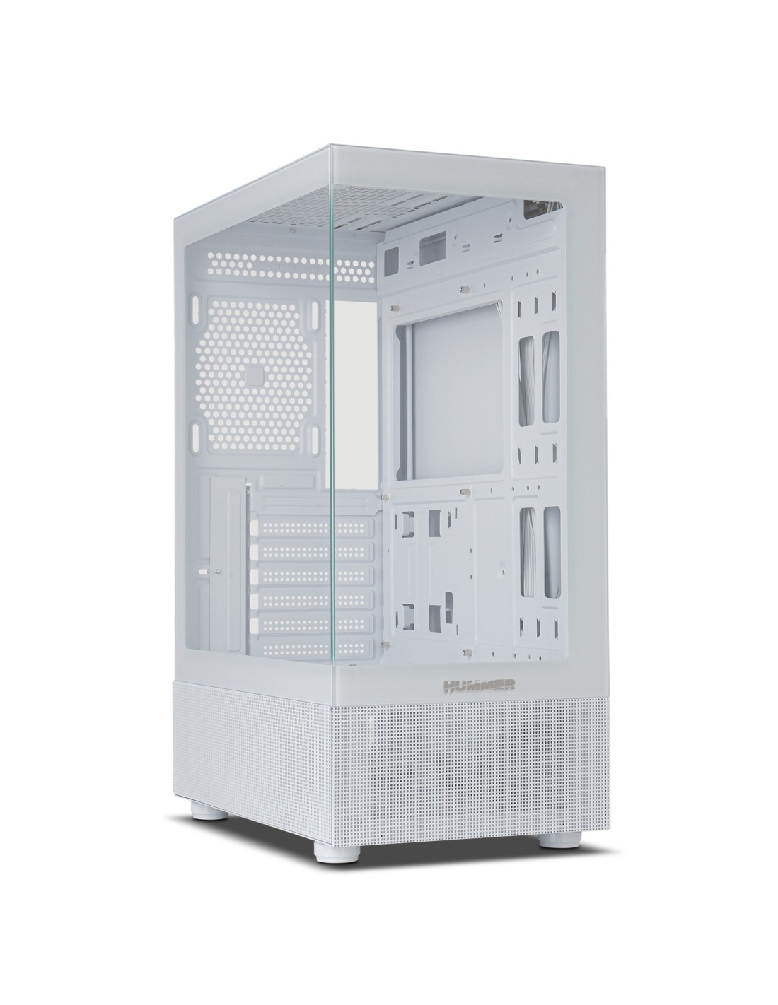 Disponible en dos colores, blanco o negro, la cautivadora estética de la Nox Hummer Vision presenta un diseño minimalista. Creada para experimentar un espectáculo visual de máximo nivel con su doble cristal templado, uno en su frontal y otro en el lateral, creando una gran ventana por la cuál asomarte al interior de tu configuración.