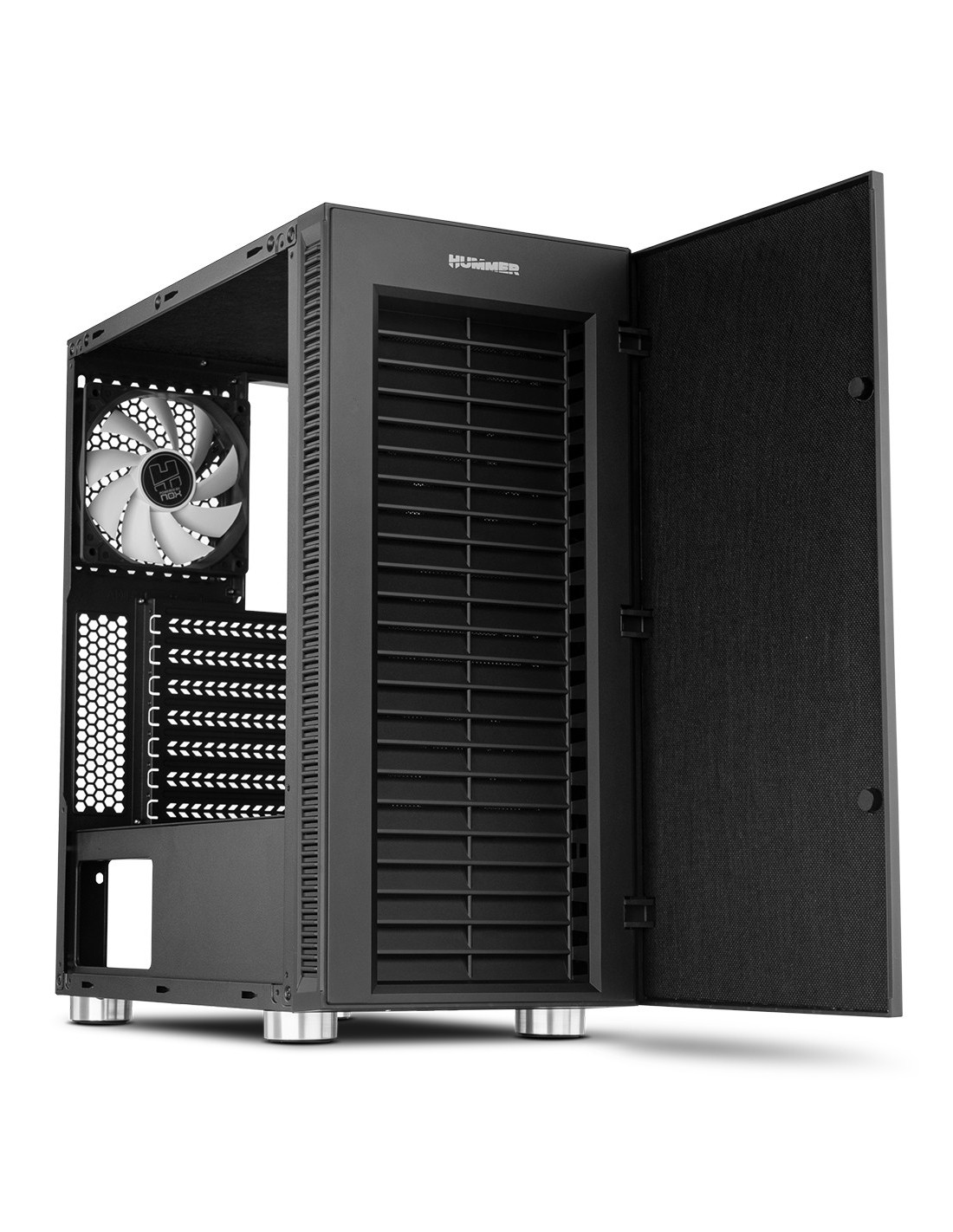 Hummer Void es una semitorre con un diseño elegante y minimalista, propio de la línea Hummer, dotada de una gran flexibilidad a la hora de albergar configuraciones de alto rendimiento. Cuenta con paneles laterales, frontal y superior amortiguadores de ruido para que puedas disfrutar de las configuraciones más potentes de forma silenciosa.