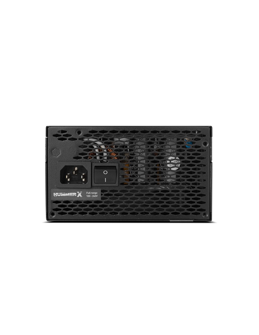 NOX HUMMER X 1000W PLUS GOLD. Potencia total: 1000 W, Voltaje de entrada AC: 100 - 240 V, Frecuencia de entrada AC: 47 - 63 Hz. Alimentador de energía para tarjeta madre: 24-pin ATX, Longitud del cable de alimentación de la placa base: 57 cm, Longitud del cable de alimentación SATA: 530 mm. Utilizar con: PC, Certificación 80 PLUS: 80 PLUS Gold. Color del producto: Negro, Tipo de enfriamiento: Activo, Diámetro de ventilador: 12 cm. Cables incluidos: PCIe, Peripheral (Molex), SATA