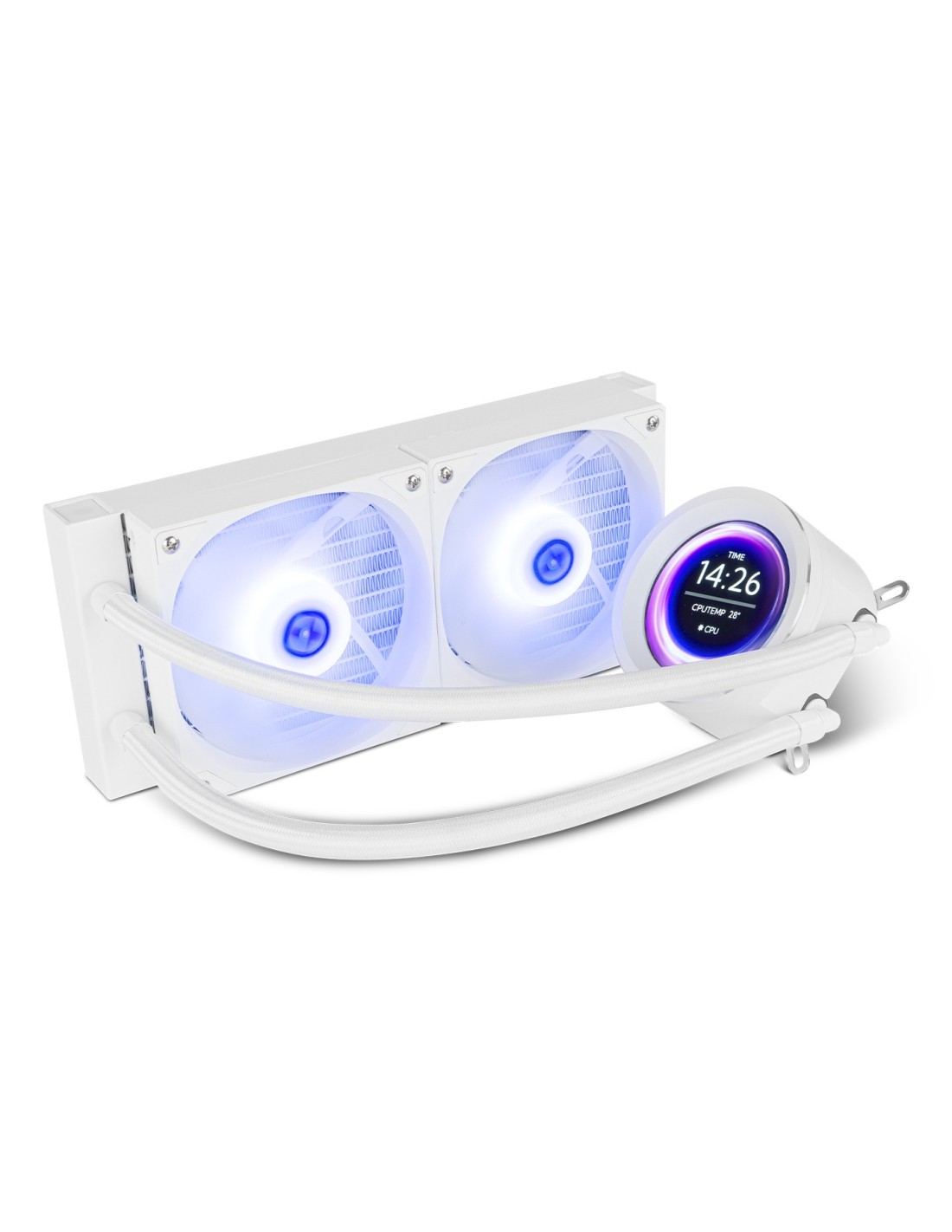 Hummer X-240 LCD es un kit de refrigeración líquida all in one fácil de instalar que ofrece un alto rendimiento con una baja sonoridad. Gracias a su radiador doble (277 x 120 x 27 mm) y sus ventiladores con función PWM que mantienen de manera eficaz la temperatura del ordenador. Además, incluye una pantalla LCD personalizable, que podrás configurar según los datos que necesites saber de tu configuración.