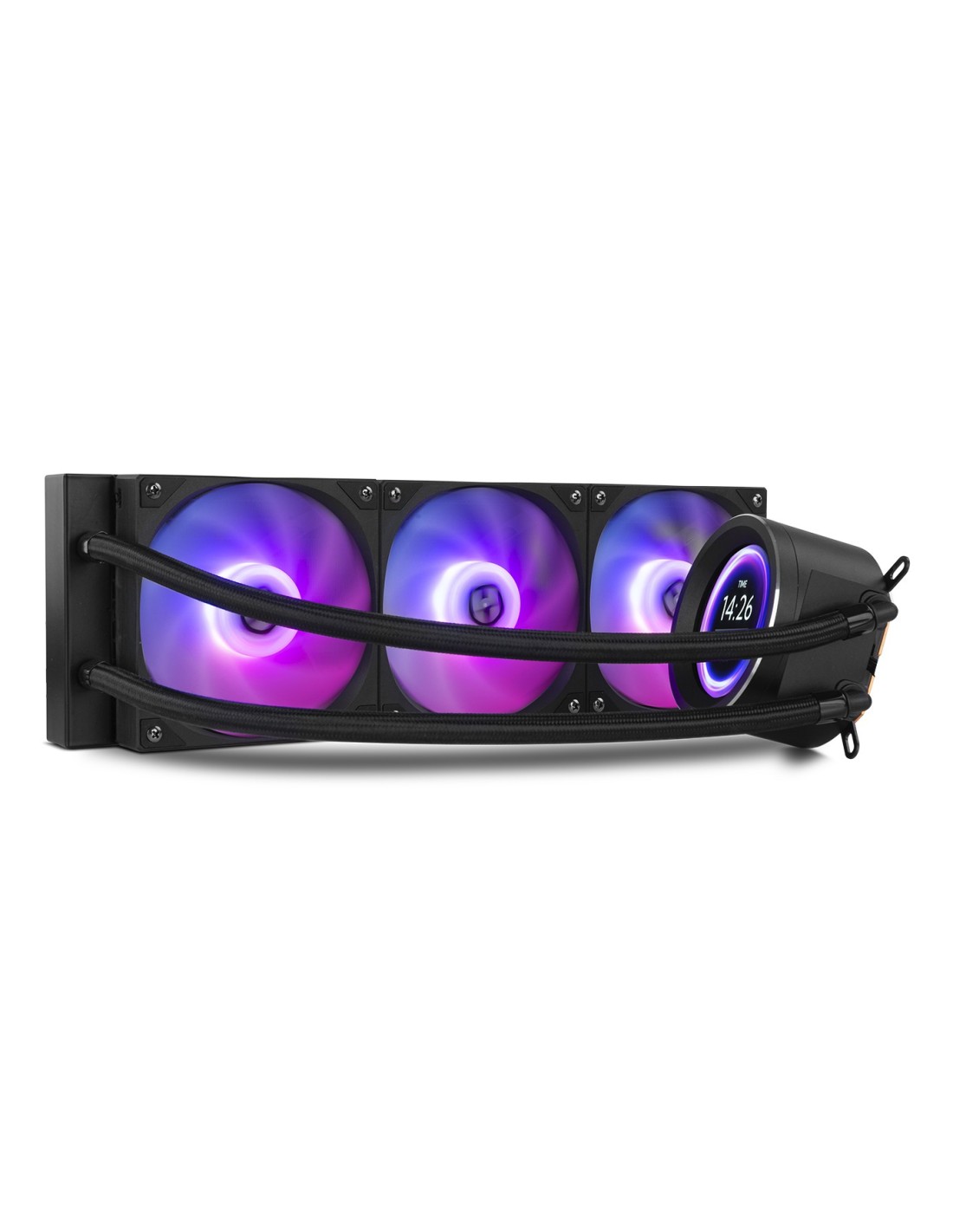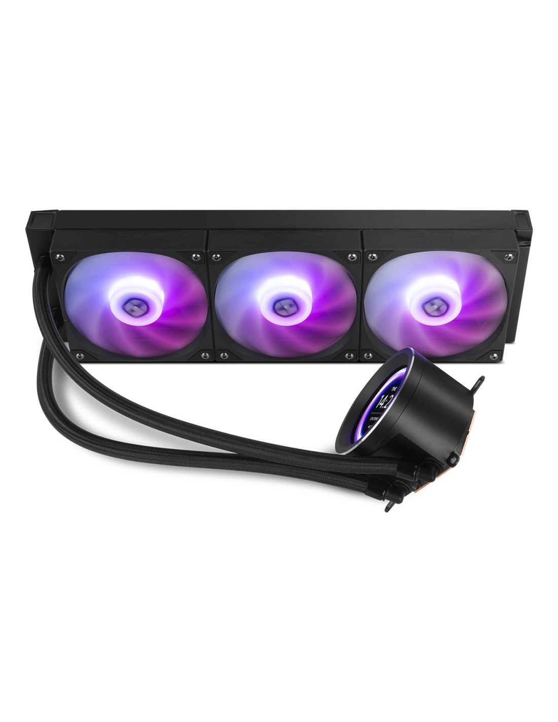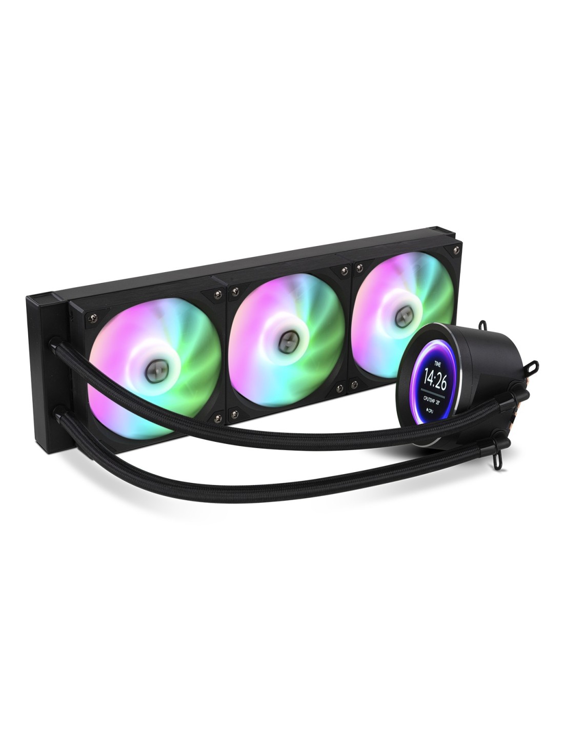 Hummer X-360 LCD es un kit de refrigeración líquida all in one fácil de instalar que ofrece un alto rendimiento con una baja sonoridad. Gracias a su radiador triple (397 x 120 x 27 mm) y sus ventiladores con función PWM que mantienen de manera eficaz la temperatura del ordenador. Además, incluye una pantalla LCD personalizable, que podrás configurar según los datos que necesites saber de tu configuración.