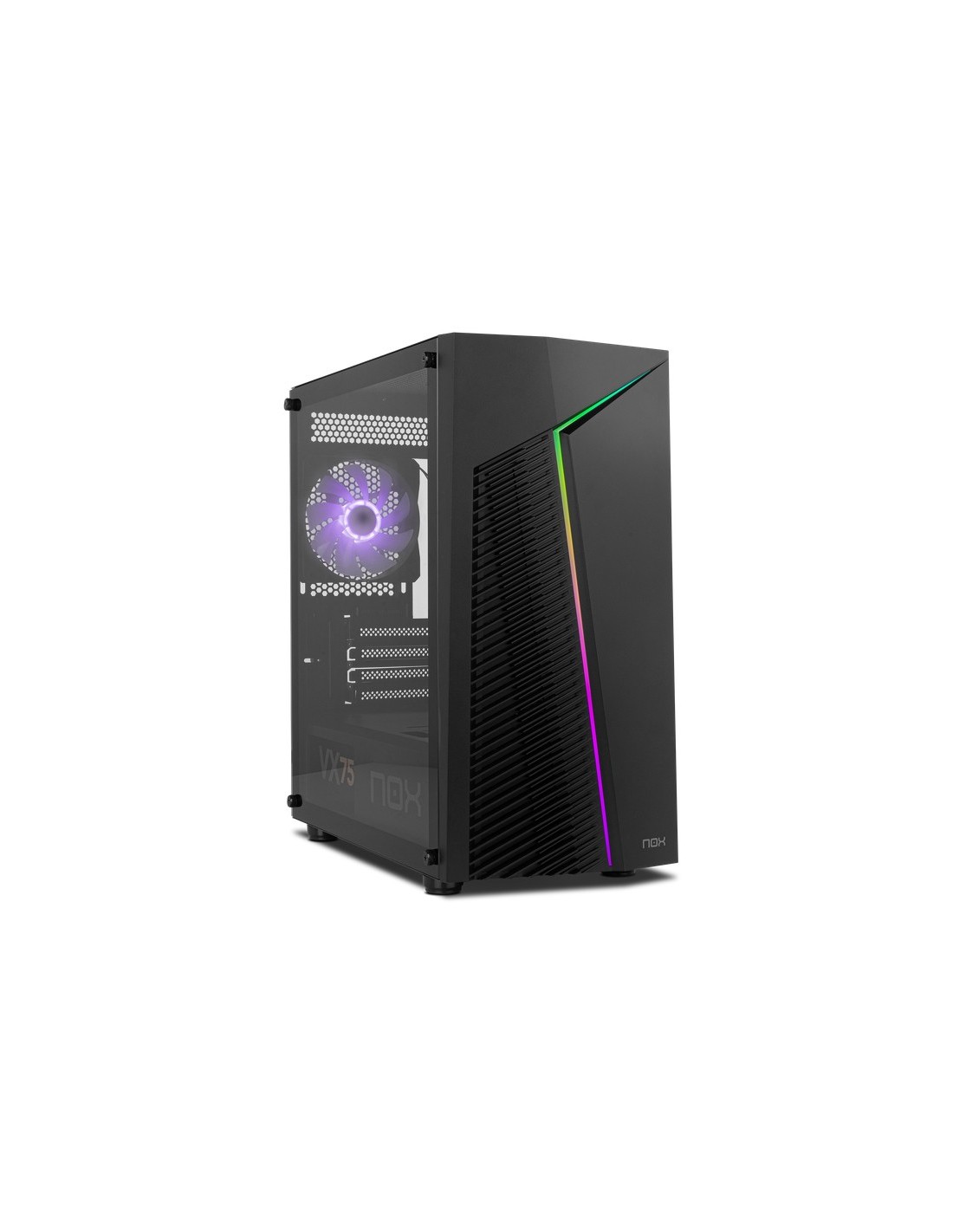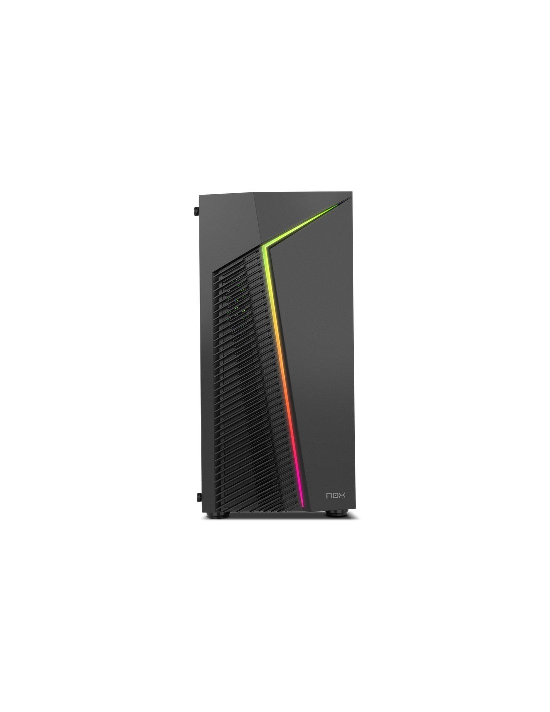 Nox Infinity Zeta es una minitorre elegante y sobria, adornada en su frontal con un tira LED ARGB Rainbow dinámica. Admira la configuración pro que has creado gracias a su gran ventana de cristal templado lateral. Además, incorpora detalles como su botón en el panel superior, con el que podrás controlar la iluminación ARGB.