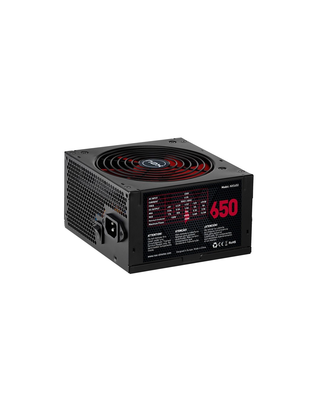 NOX NXS650. Potencia total: 650 W, Voltaje de entrada AC: 230 V, Frecuencia de entrada AC: 50 - 60 Hz. Alimentador de energía para tarjeta madre: 20+4 pin ATX, Tipo de cableado: No modular. Utilizar con: PC. Color del producto: Negro, Rojo, Tipo de enfriamiento: Activo, Diámetro de ventilador: 14 cm. Ancho: 150 mm, Profundidad: 160 mm, Altura: 86 mm