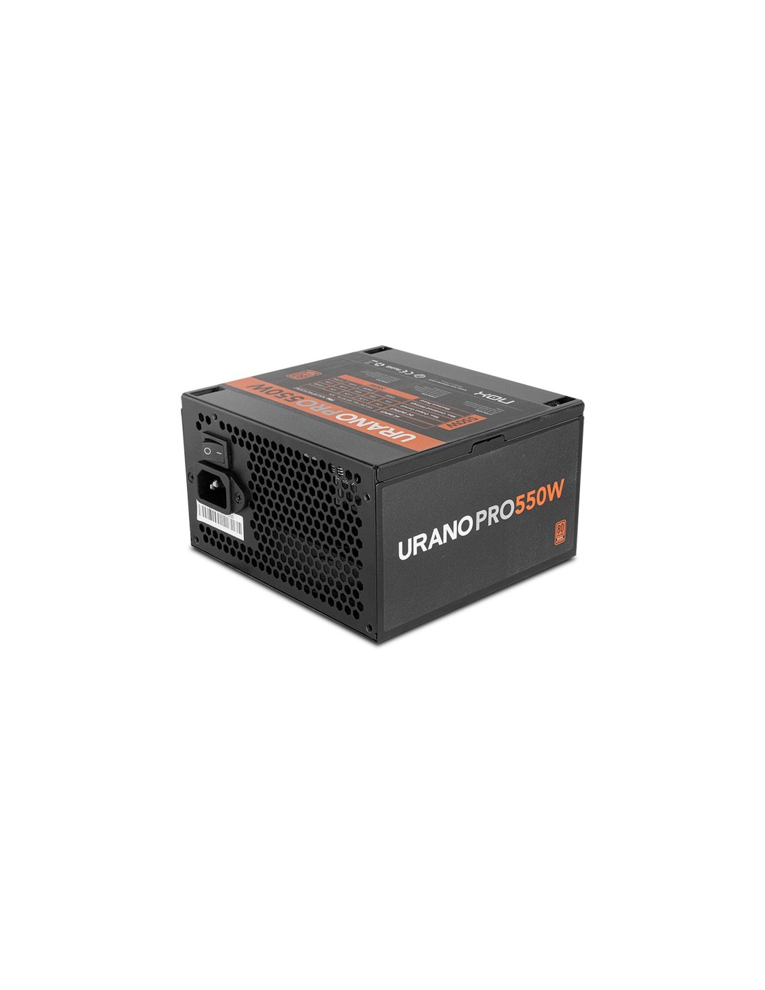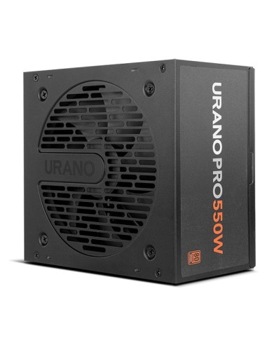NOX Urano Pro. Potencia total: 550 W, Voltaje de entrada AC: 100 - 240 V, Frecuencia de entrada AC: 50/60 Hz. Alimentador de energía para tarjeta madre: 20+4 pin ATX, Longitud del cable de alimentación SATA: 600,750,900 mm, Longitud del cable de alimentación periférico (Molex): 600,750 mm. Utilizar con: PC, Factor de forma de fuente de alimentación (PSU): ATX, Certificación 80 PLUS: 80 PLUS Bronze. Color del producto: Negro, Naranja, Tipo de enfriamiento: Activo, Diámetro de ventilador: 12 cm. Certificados de conformidad: RoHS, Certificación: CE, WEEE, ERP 2013