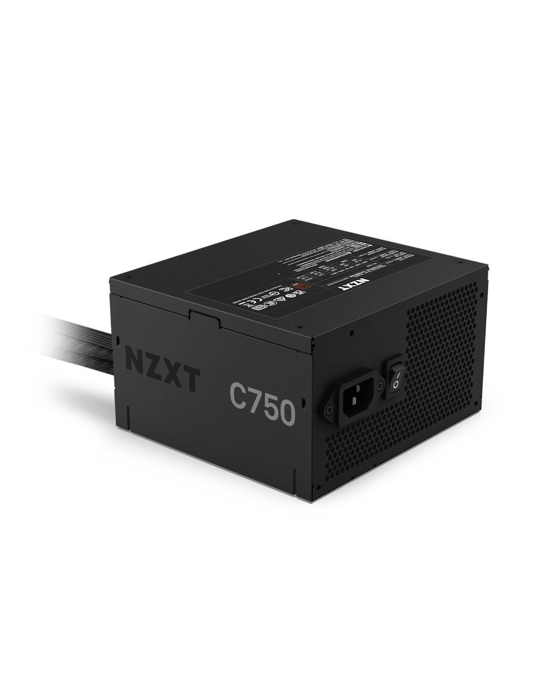 NZXT C750. Potencia total: 750 W, Voltaje de entrada AC: 115 - 240 V, Frecuencia de entrada AC: 50/60 Hz. Alimentador de energía para tarjeta madre: 24-pin ATX, Longitud del cable de alimentación de la placa base: 60 cm, Longitud del cable de alimentación SATA: 150,500 mm. Utilizar con: PC, Factor de forma de fuente de alimentación (PSU): ATX, Certificación 80 PLUS: 80 PLUS Bronze. Color del producto: Negro, Tipo de enfriamiento: Activo, Diámetro de ventilador: 12 cm. Certificados de conformidad: CE, Comisión Federal de Comunicaciones (FCC) de Estados Unidos, RCM, RoHS, UKCA, WEEE