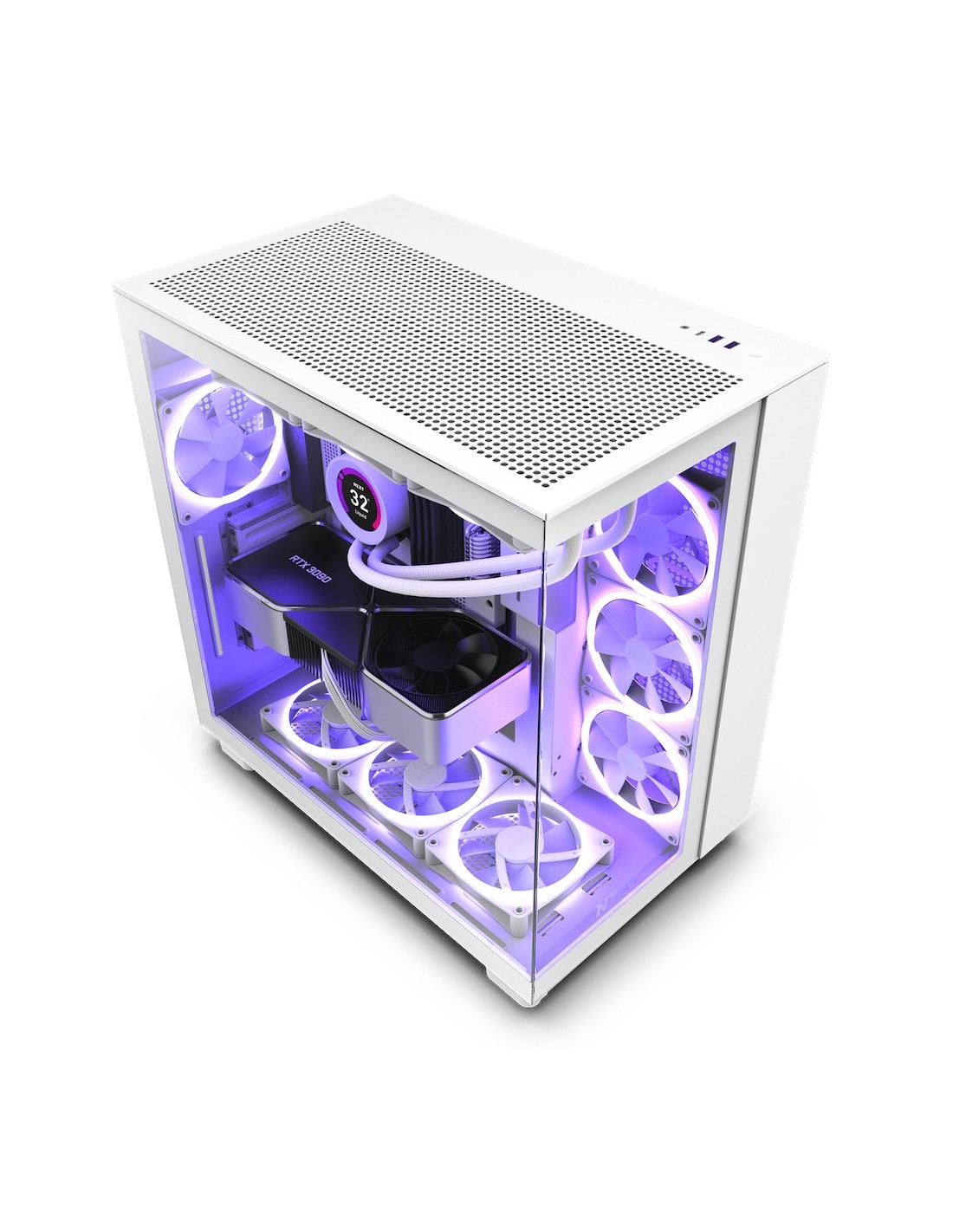 NZXT H9 Flow. Factor de forma: Midi Tower, Tipo: PC, Color del producto: Blanco. Ventiladores laterales instalados: 3x 120 mm, Diámetro de ventiladores secundarios soportados: 120 mm, Ventiladores traseros instalados: 1x 120 mm. Tamaños de disco duro soportados: 2.5,3.5". Ancho: 290 mm, Profundidad: 466 mm, Altura: 495 mm