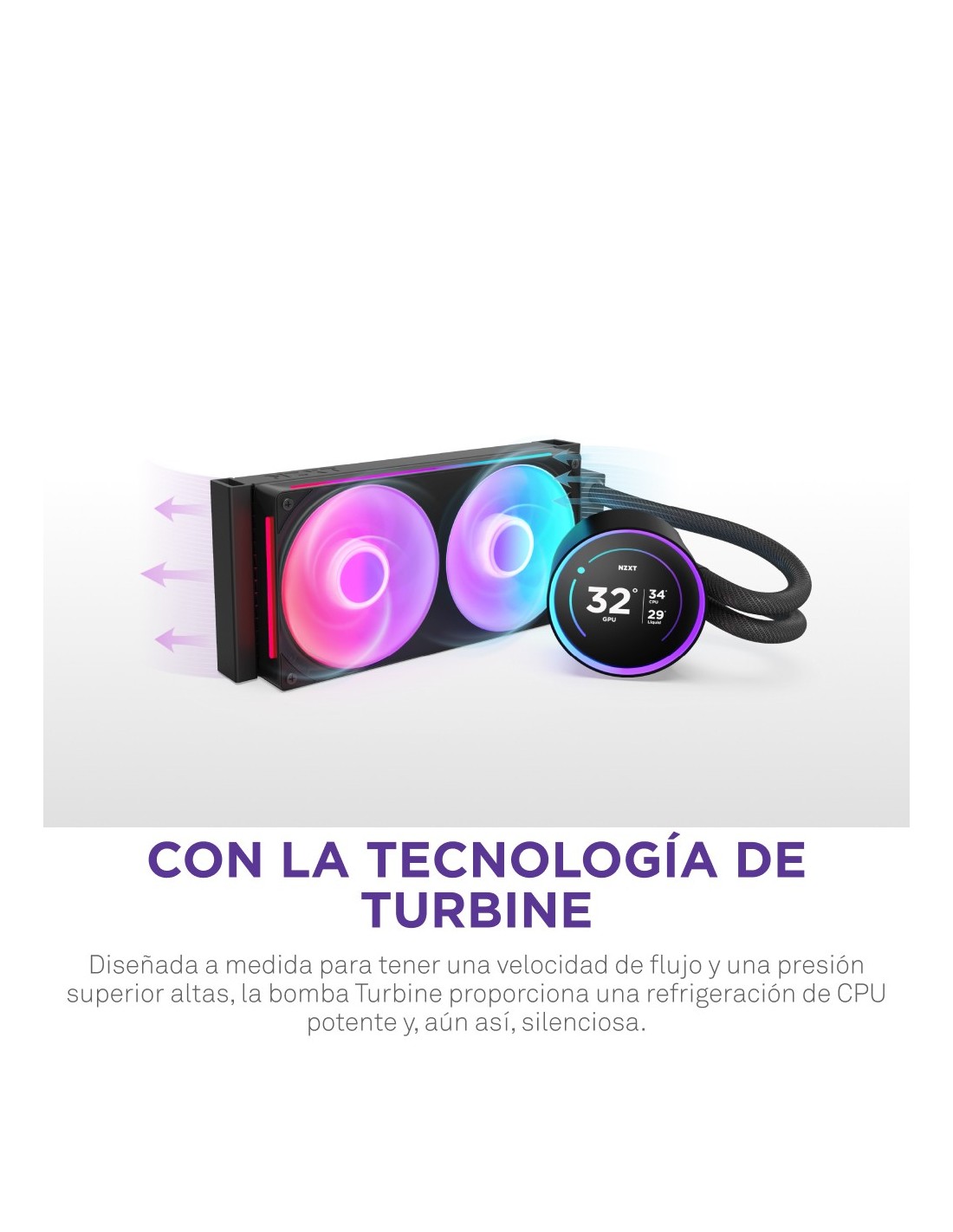 NZXT Kraken Elite 240 RGB. Tipo: Sistema de refrigeración líquida todo en uno, Diámetro de ventilador: 12 cm, Presión máxima de aire: 3,3 mmH2O. Color del producto: Negro