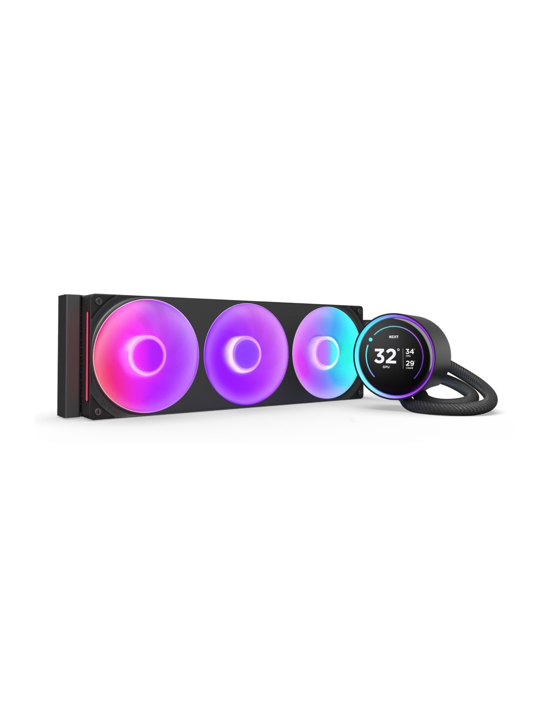 NZXT Kraken Elite 360 RGB. Tipo: Sistema de refrigeración líquida todo en uno, Diámetro de ventilador: 12 cm, Presión máxima de aire: 3,3 mmH2O. Color del producto: Negro