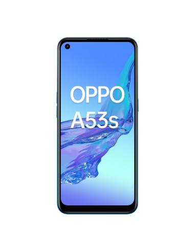 OPPO A53s . Diagonal de la pantalla: 16,5 cm (6.5"), Resolución de la pantalla: 1600 x 720 Pixeles. Frecuencia del procesador: 1,8 GHz, Familia de procesador: Qualcomm Snapdragon, Modelo del procesador: 460. Capacidad de RAM: 4 GB, Tipo de RAM: LPDDR4X, Capacidad de almacenamiento interno: 128 GB. Resolución de la cámara trasera (numérica): 13 MP, Tipo de cámara trasera: Triple cámara. Capacidad de la tarjeta SIM: SIM doble. Sistema operativo instalado: ColorOS 7.2. Capacidad de batería: 5000 mAh. Color del producto: Azul. Peso: 186 g