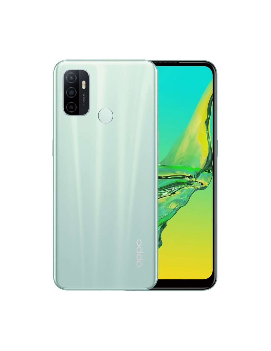 OPPO A53s . Diagonal de la pantalla: 16,5 cm (6.5"), Resolución de la pantalla: 1600 x 720 Pixeles. Familia de procesador: MediaTek, Modelo del procesador: Dimensity 700. Capacidad de RAM: 4 GB, Tipo de RAM: LPDDR4X. Resolución de la cámara trasera (numérica): 13 MP, Tipo de cámara trasera: Triple cámara. Capacidad de la tarjeta SIM: SIM doble. Sistema operativo instalado: ColorOS 7.2. Capacidad de batería: 5000 mAh. Color del producto: Verde. Peso: 189,6 g