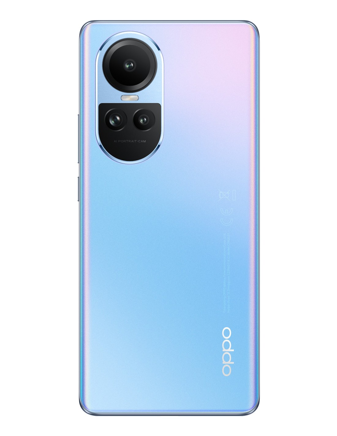 OPPO 10 5G. Diagonal de la pantalla: 17 cm (6.7"), Resolución de la pantalla: 2412 x 1080 Pixeles. Familia de procesador: MediaTek, Modelo del procesador: 7050. Capacidad de RAM: 8 GB, Tipo de RAM: LPDDR4X, Capacidad de almacenamiento interno: 256 GB. Resolución de la cámara trasera (numérica): 64 MP, Tipo de cámara trasera: Triple cámara. Capacidad de la tarjeta SIM: SIM doble. Sistema operativo instalado: Android 13. Capacidad de batería: 5000 mAh. Color del producto: Azul. Peso: 185 g