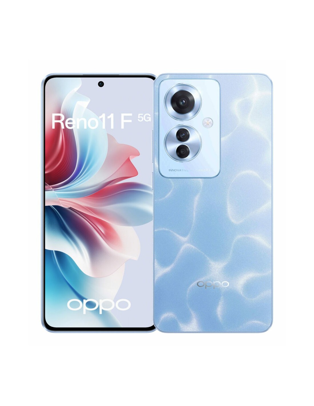 OPPO Reno11 F 5G. Diagonal de la pantalla: 17 cm (6.7"), Resolución de la pantalla: 2412 x 1080 Pixeles. Familia de procesador: MediaTek, Modelo del procesador: 7050. Capacidad de RAM: 8 GB, Tipo de RAM: LPDDR4X, Capacidad de almacenamiento interno: 256 GB. Resolución de la cámara trasera (numérica): 64 MP, Tipo de cámara trasera: Triple cámara. Capacidad de la tarjeta SIM: SIM doble. Sistema operativo instalado: Android 14. Capacidad de batería: 5000 mAh. Color del producto: Azul. Peso: 177 g