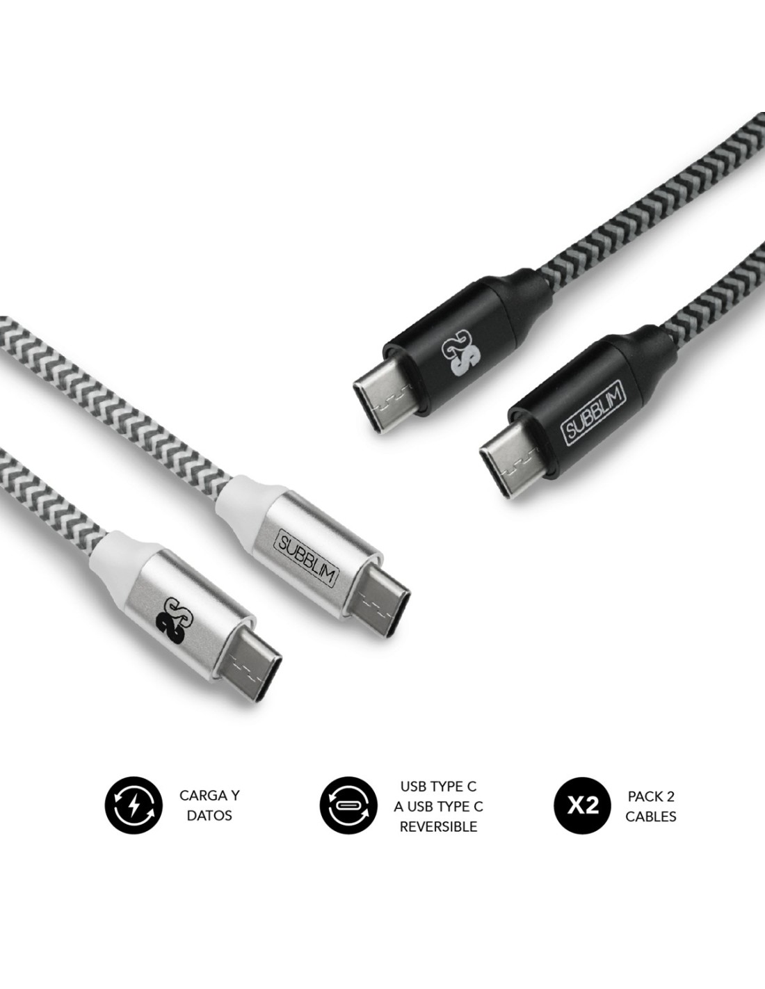 SUBBLIM PACK 2 CABLES USB TIPO USB-C A USB-C 1 M BLACK/SILVER