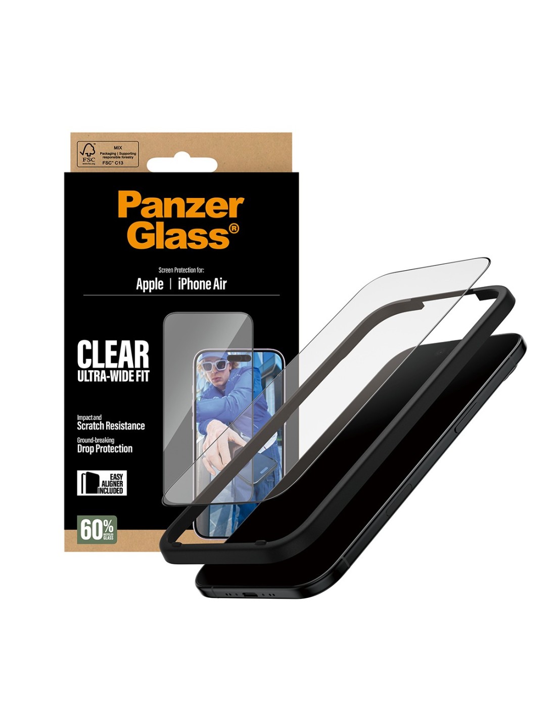PanzerGlass ® Screen Protector iPhone Air | Ultra-Wide Fit w. EasyAligner, Apple, Apple - iPhone Air, Aplicación en seco, Resistente a rayones, Resistente a golpes, Transparente, 1 pieza(s)
